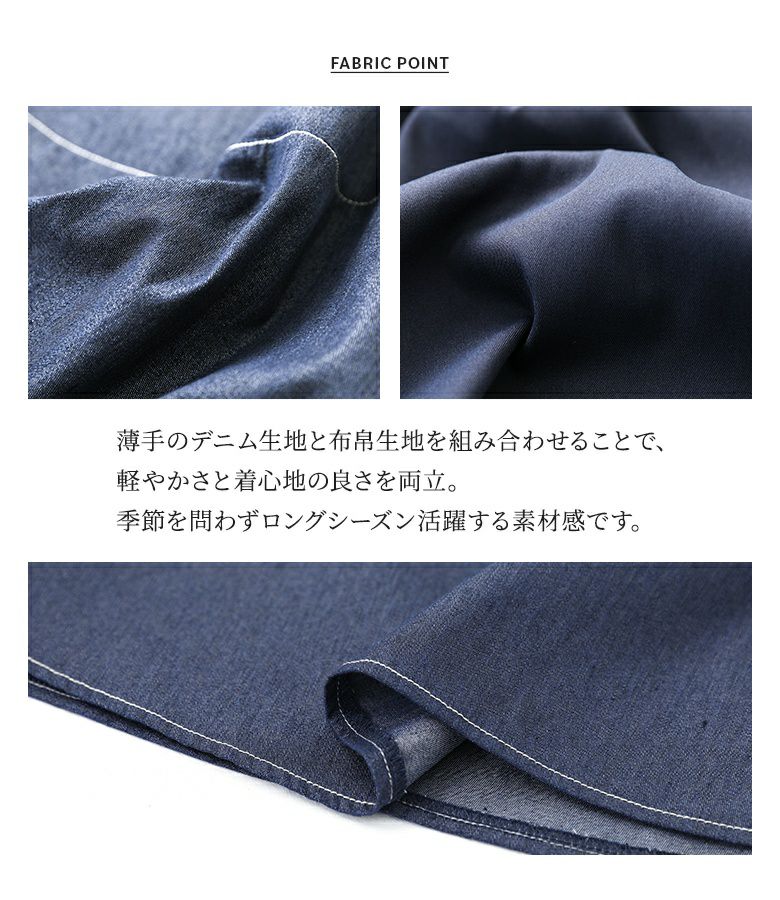 素材デニム:コットン65% ポリエステル33% ポリウレタン2%