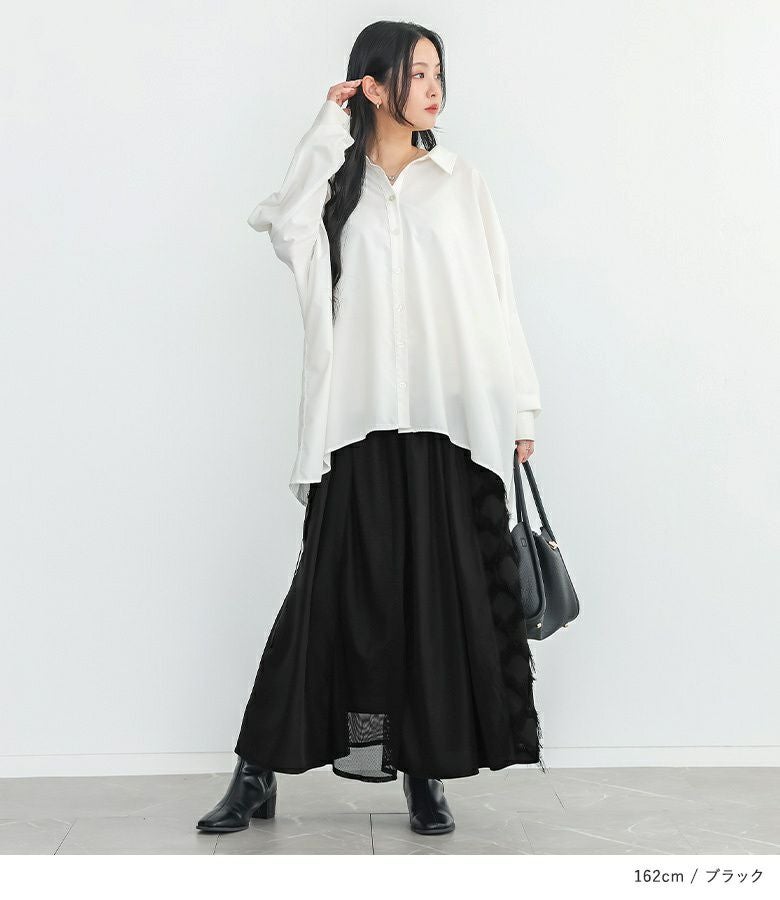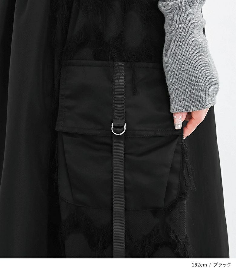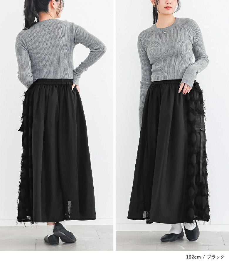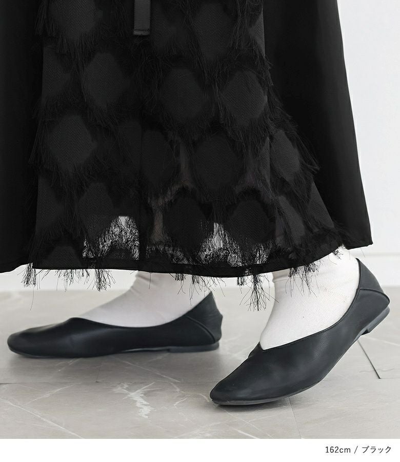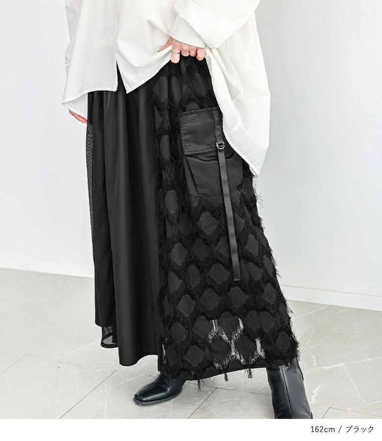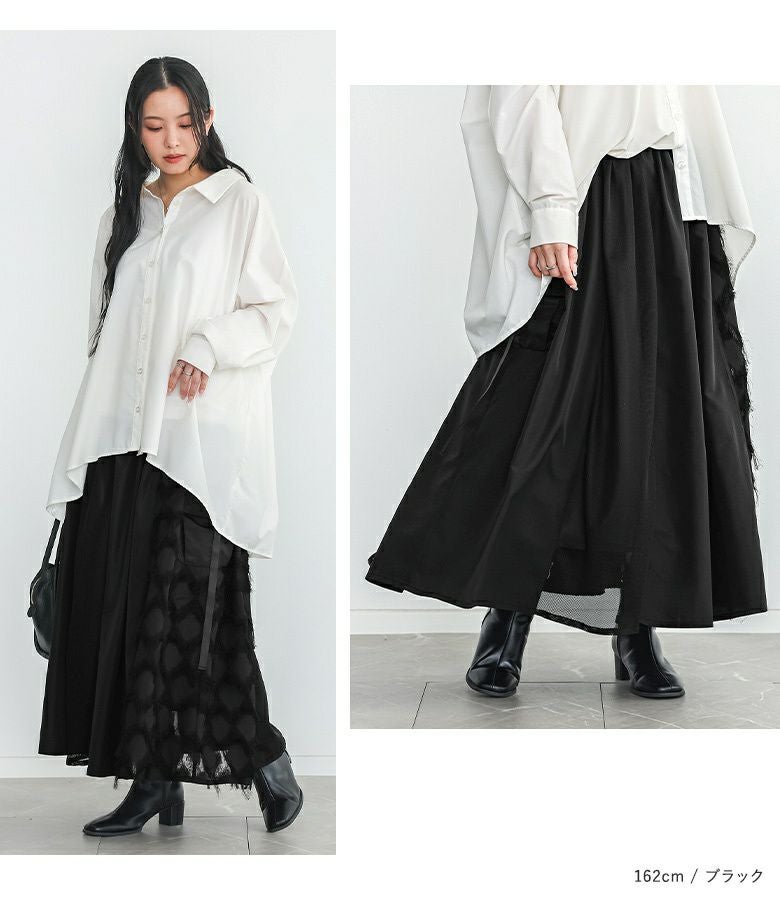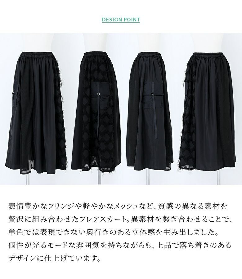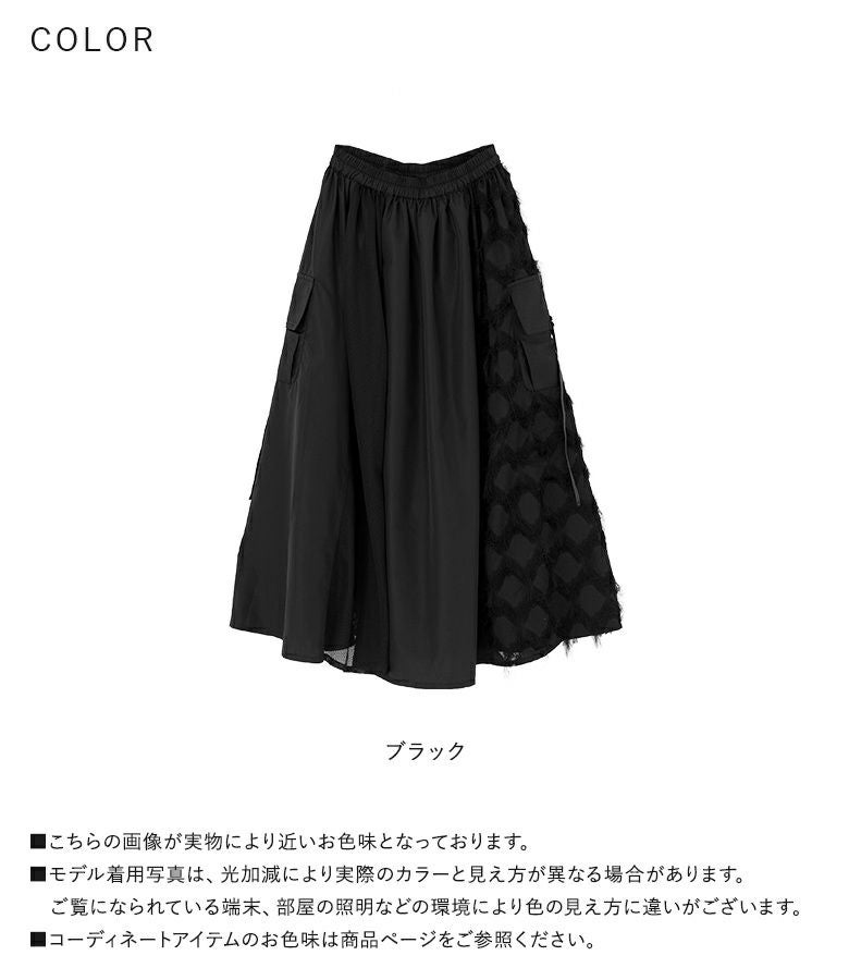 歩くたびにドラマチックな揺れ感を楽しめるパターン切替スカート。