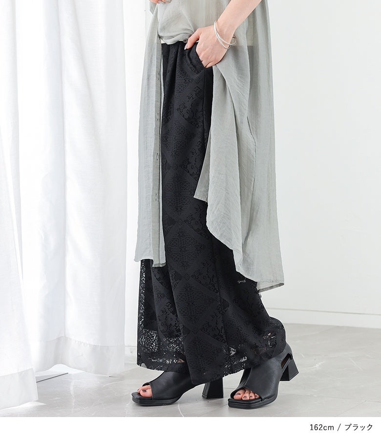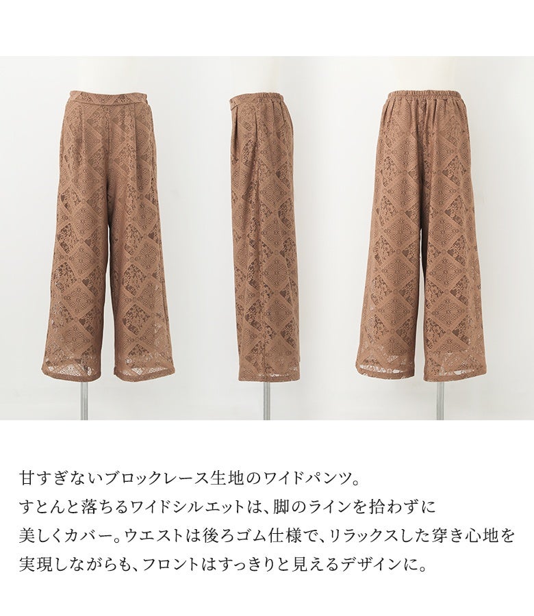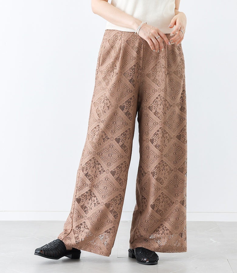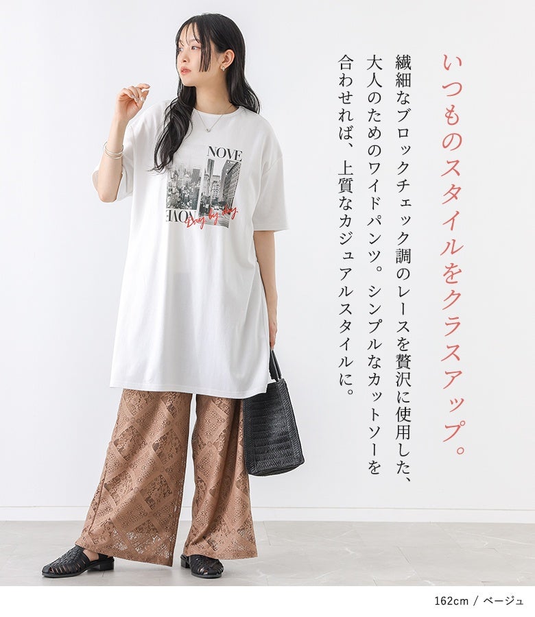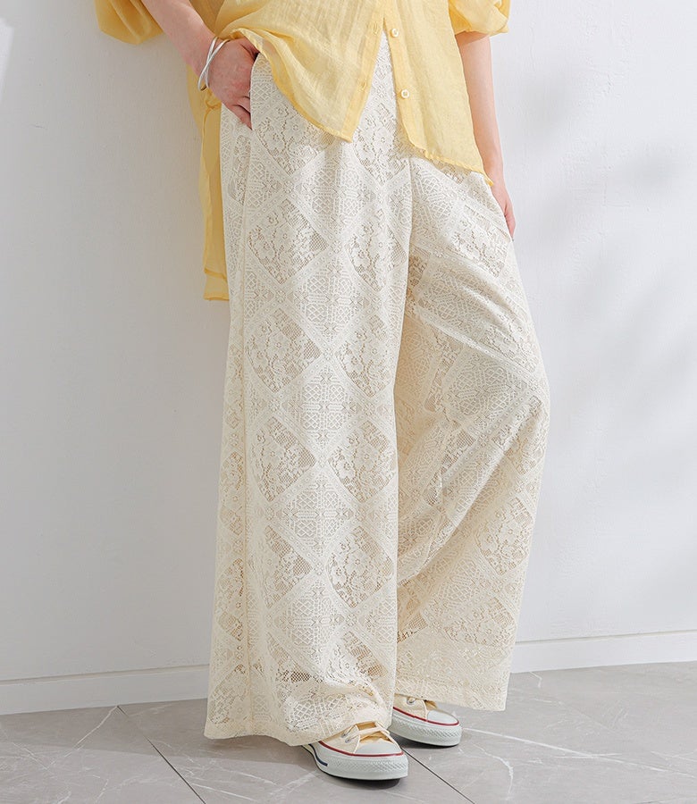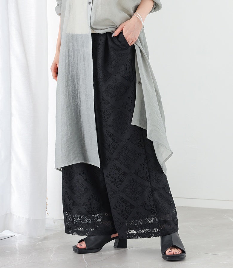足元に軽やかな奥行きを生み出すブロックレースパンツ。