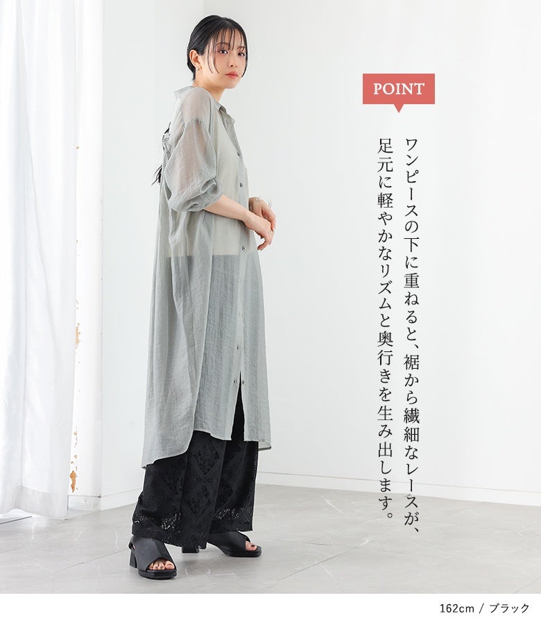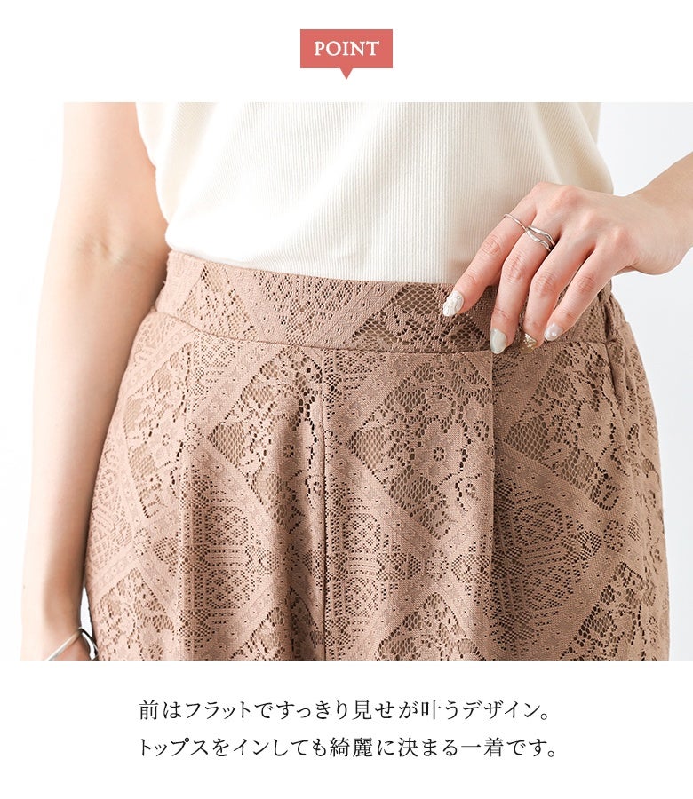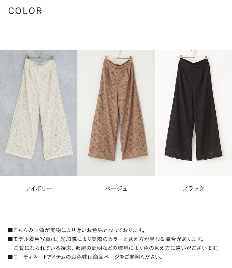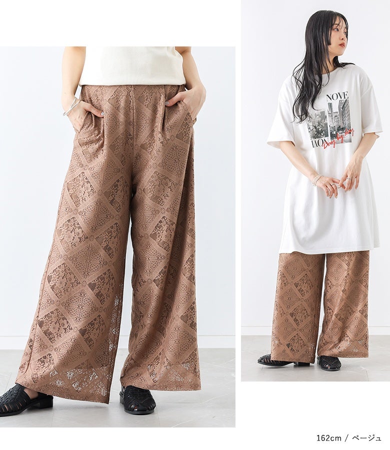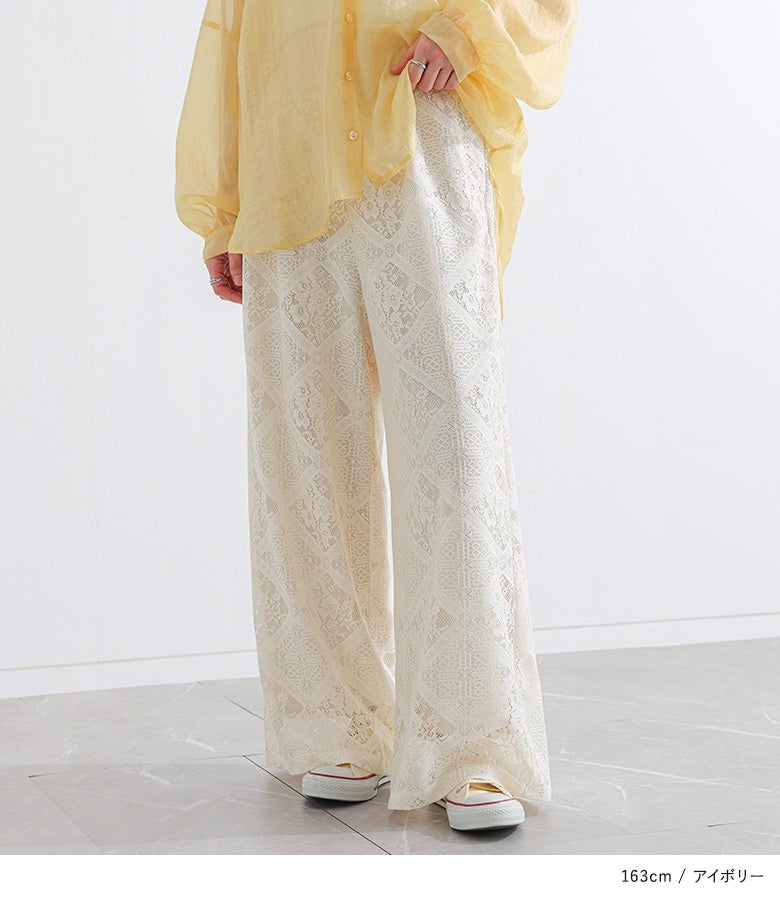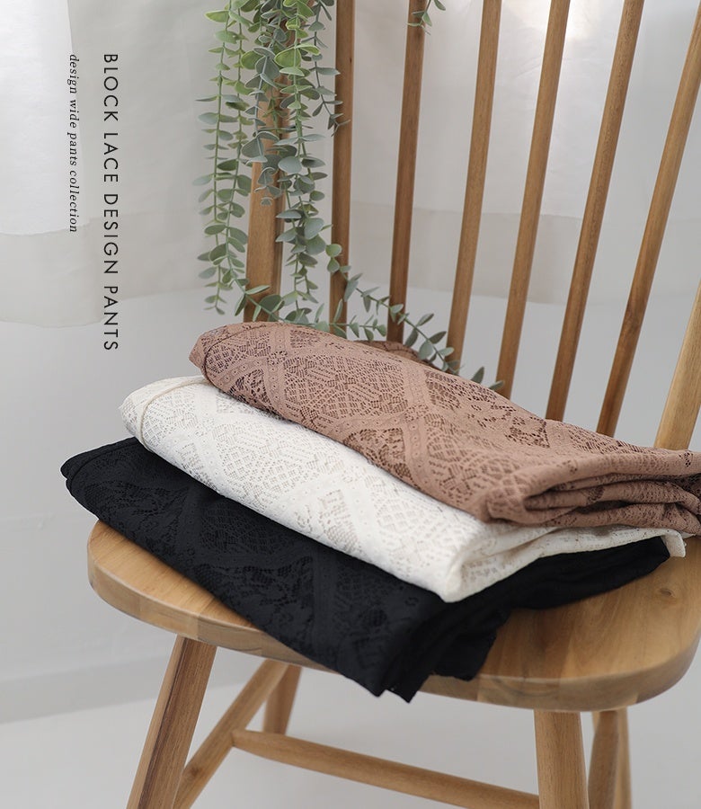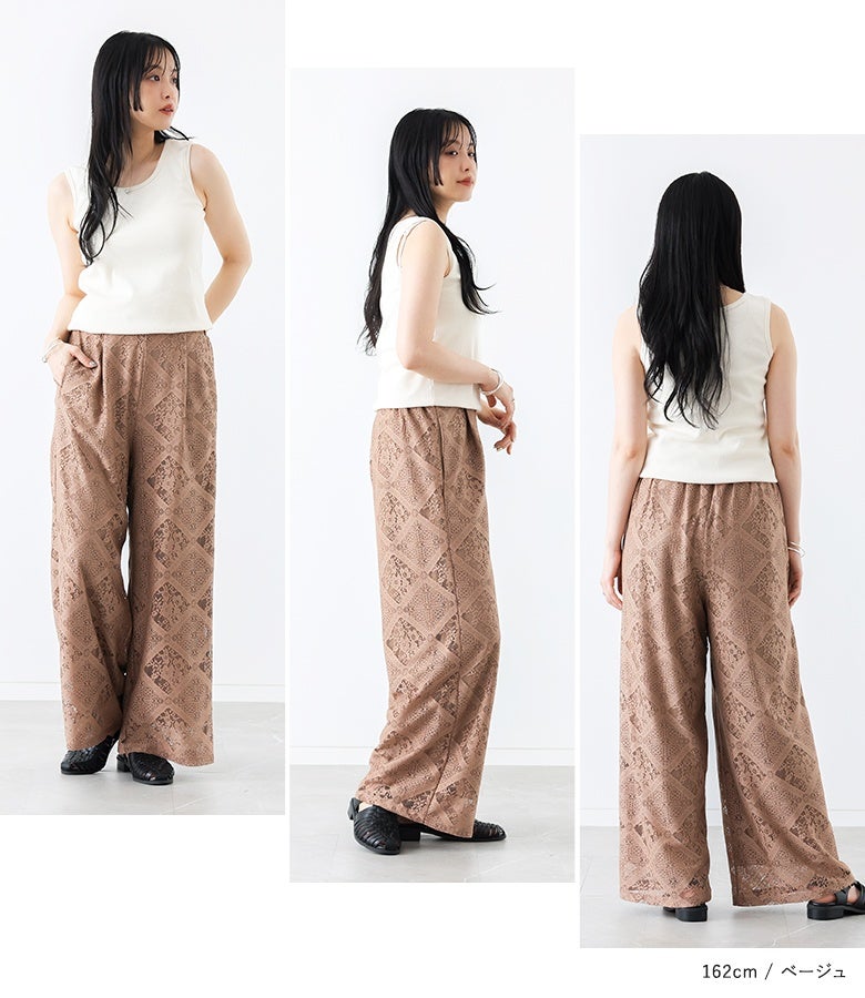 足元に軽やかな奥行きを生み出すブロックレースパンツ。