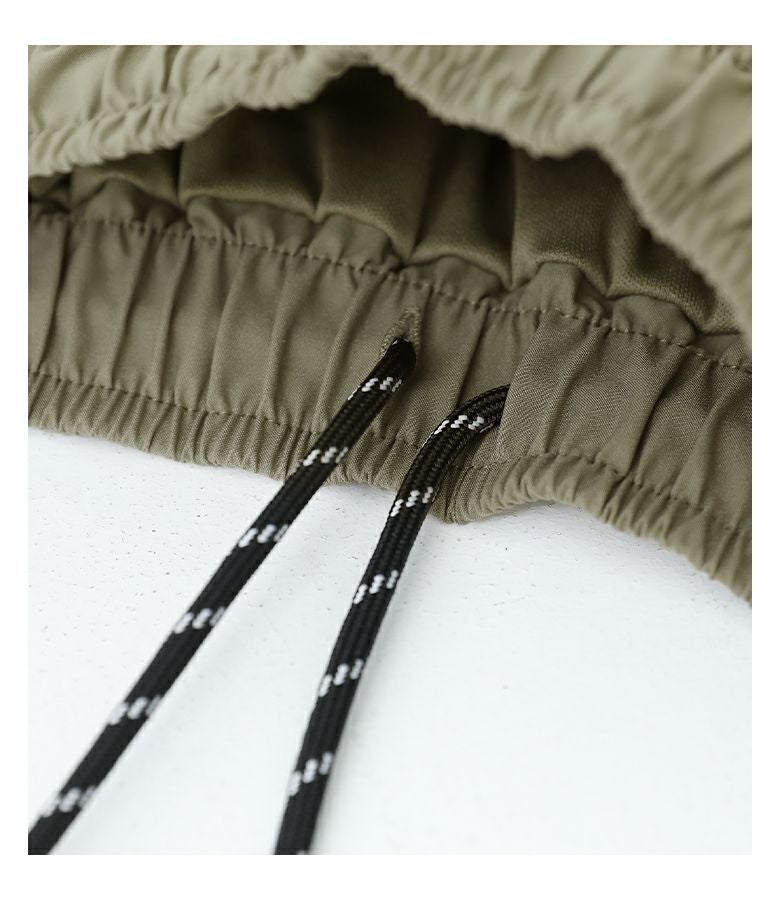 シャカシャカとした触り心地のポリエステル素材を使用。水をはじく撥水加工が施されているので、雨の日でも安心してご着用いただけます。
