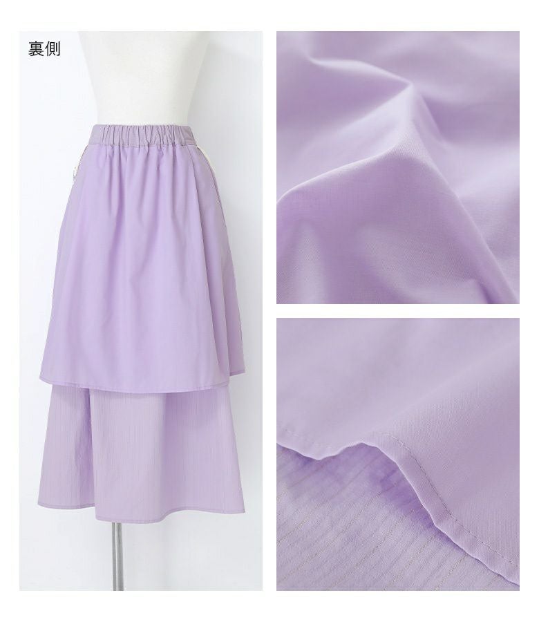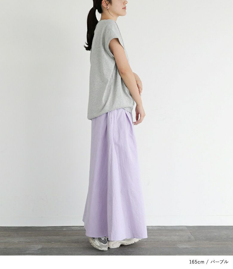 シンプルなトップに合わせるだけでコーディネートが完成します。甘くなりすぎない淡いカラーのため、カジュアルにもガーリーにもお好みのスタイルに着回しできます。