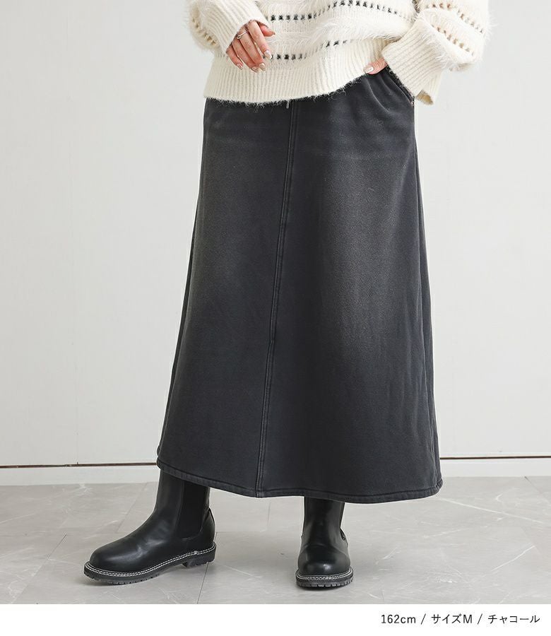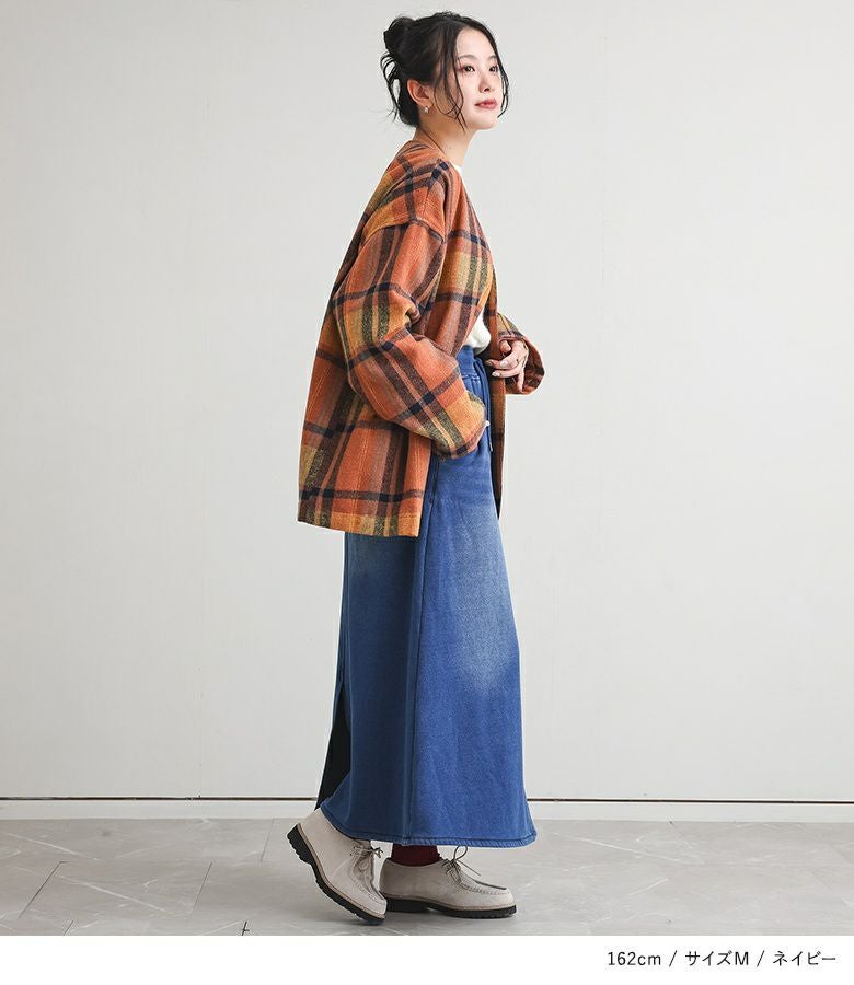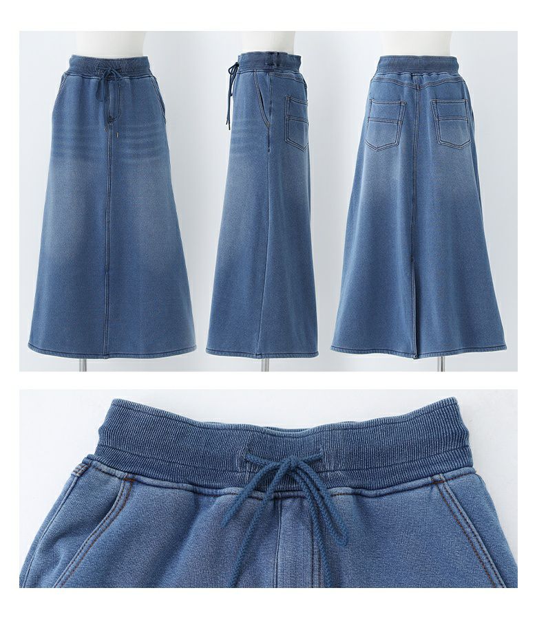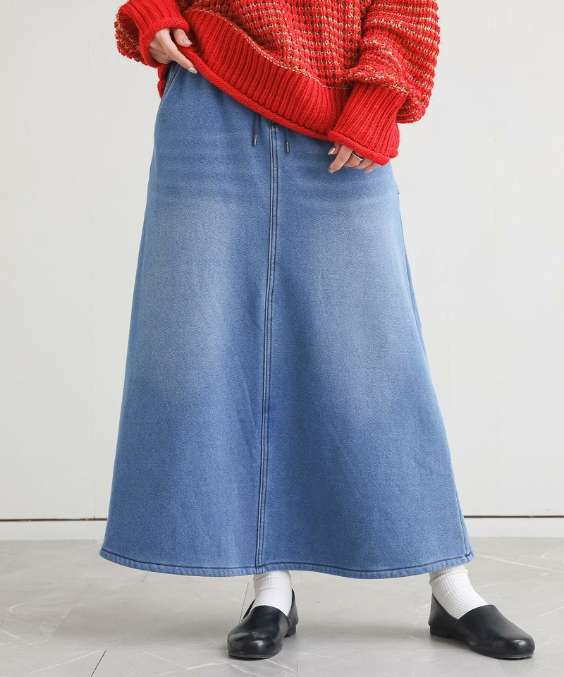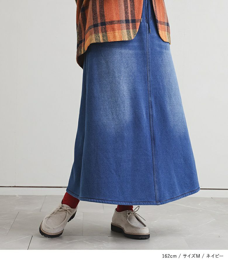 選べる2サイズ展開!見た目はデニム、裏側がシャギーであたたかいデニムスカート。 『裏シャギーニットデニムスカート』