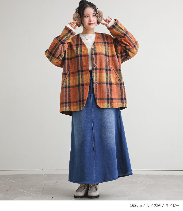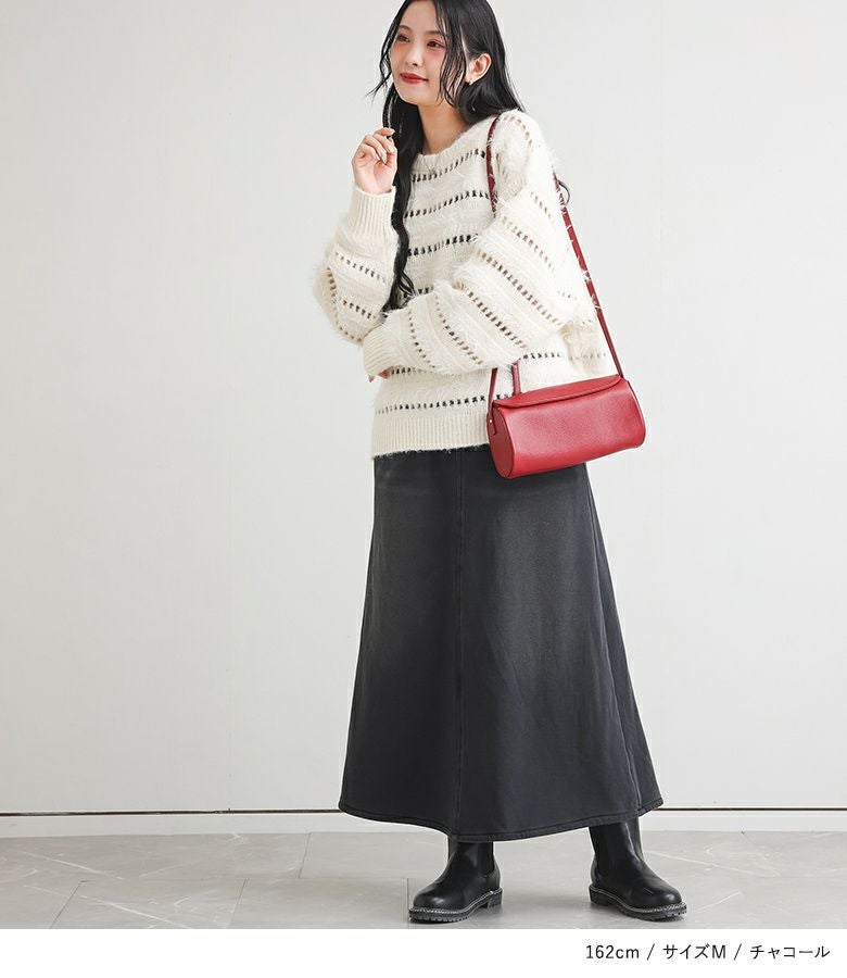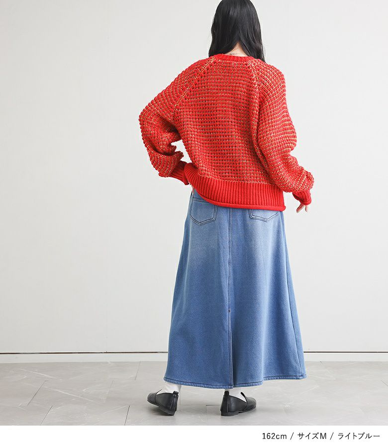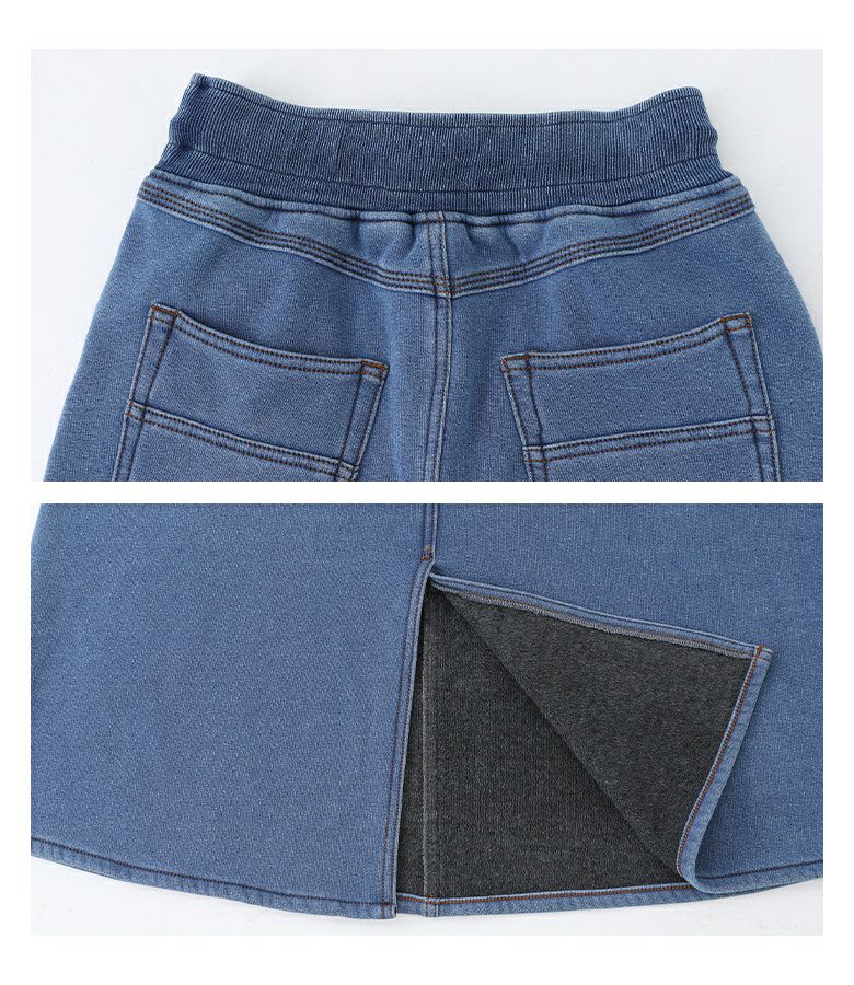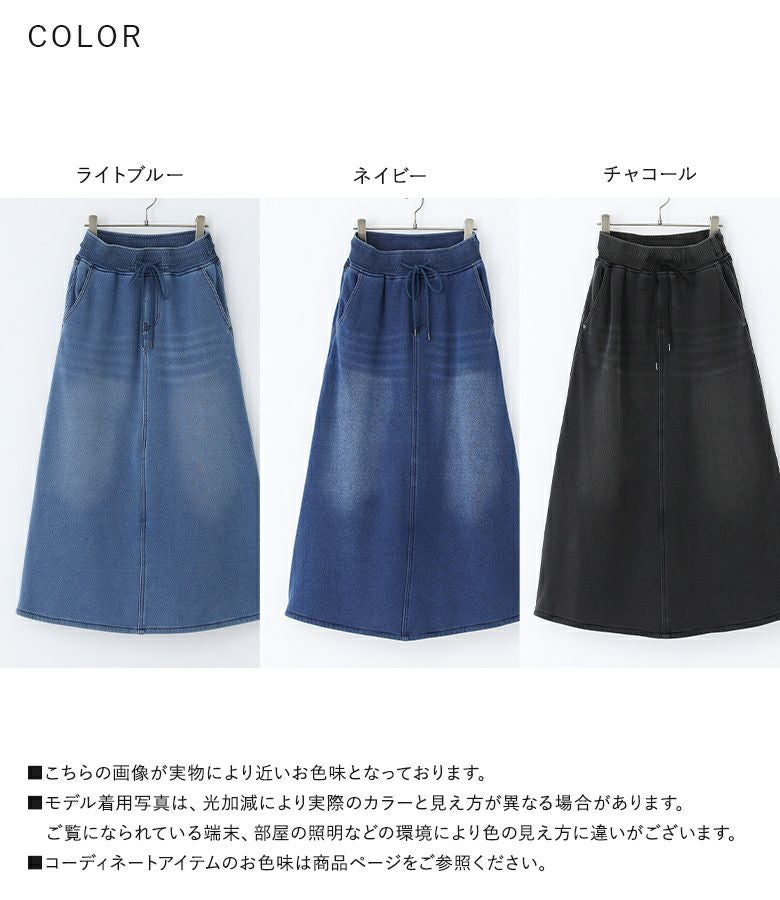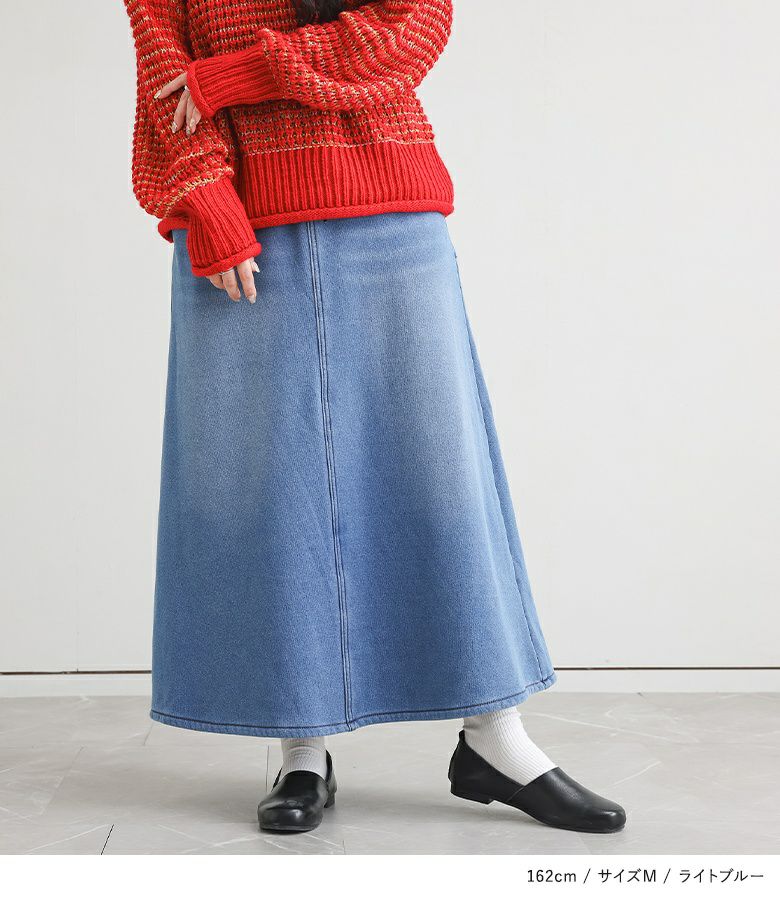 選べる2サイズ展開!見た目はデニム、裏側がシャギーであたたかいデニムスカート。 『裏シャギーニットデニムスカート』
