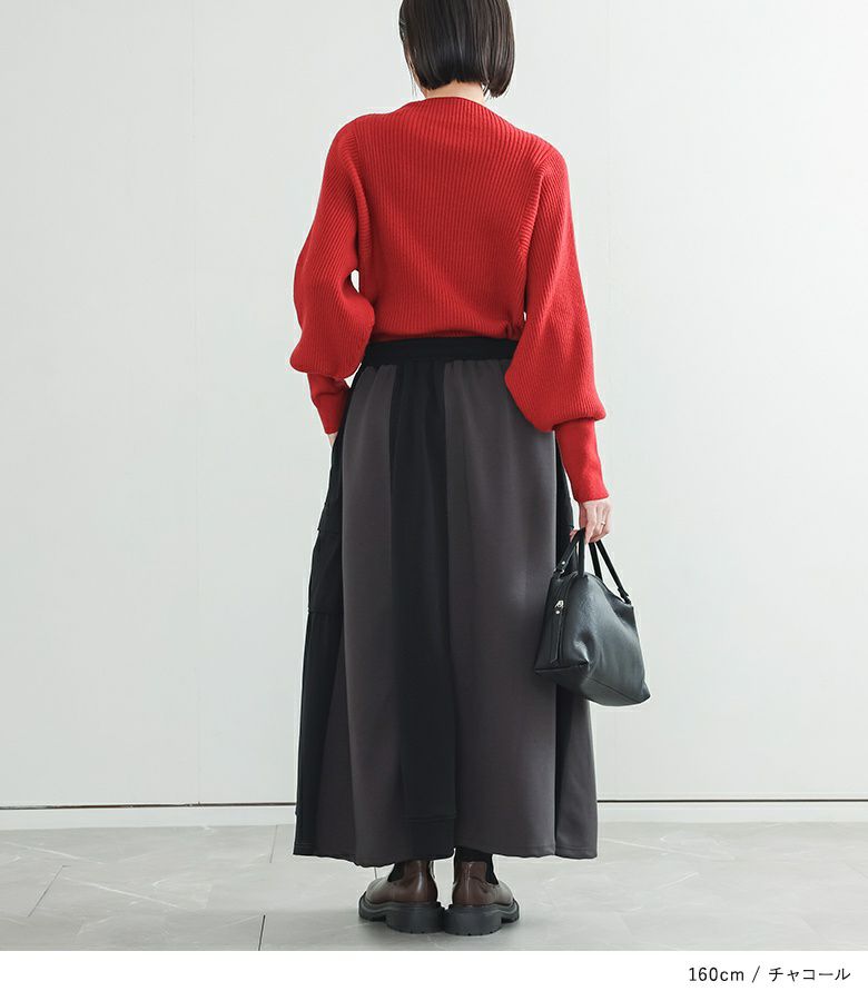 4. 『異素材切替ロングスカート』【メール便不可】【20】