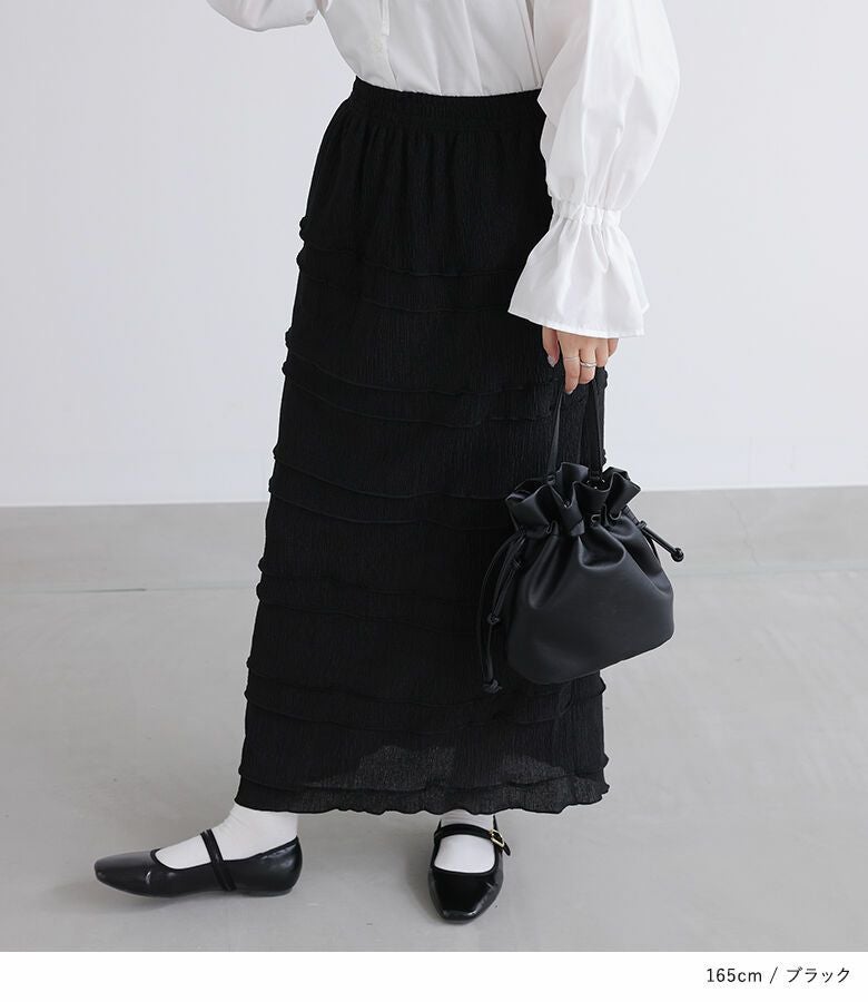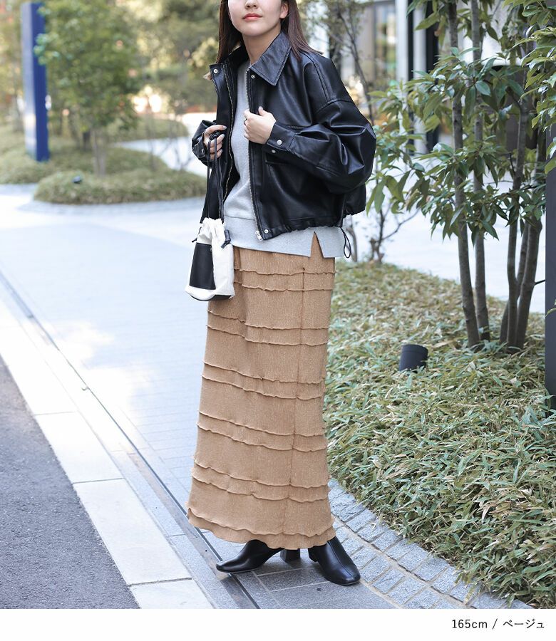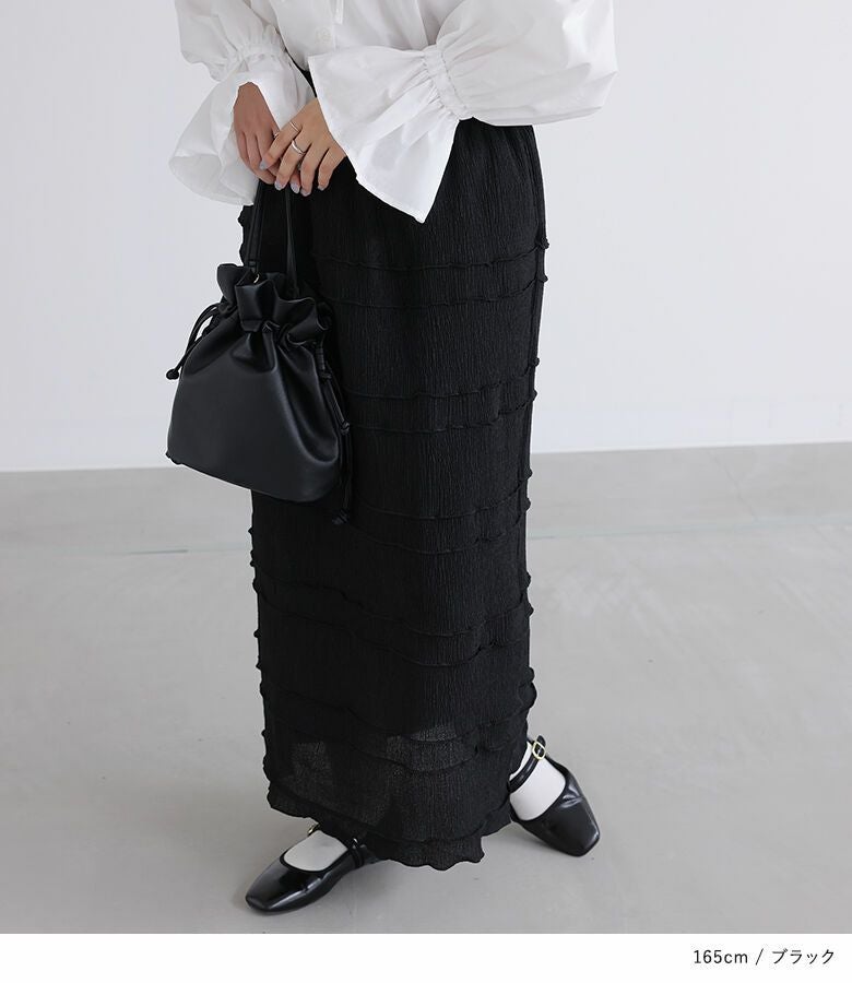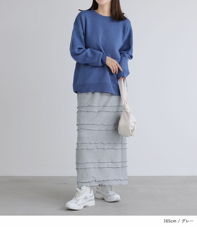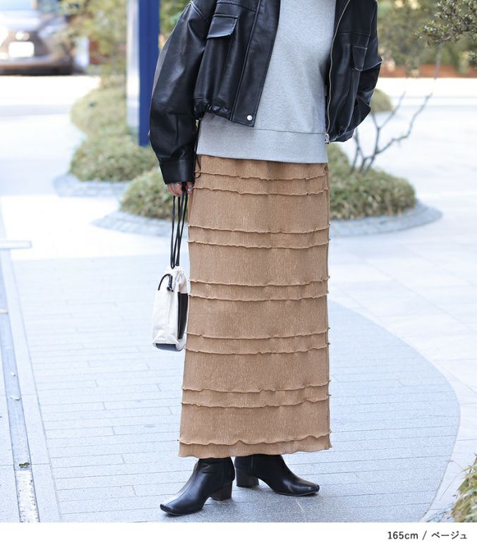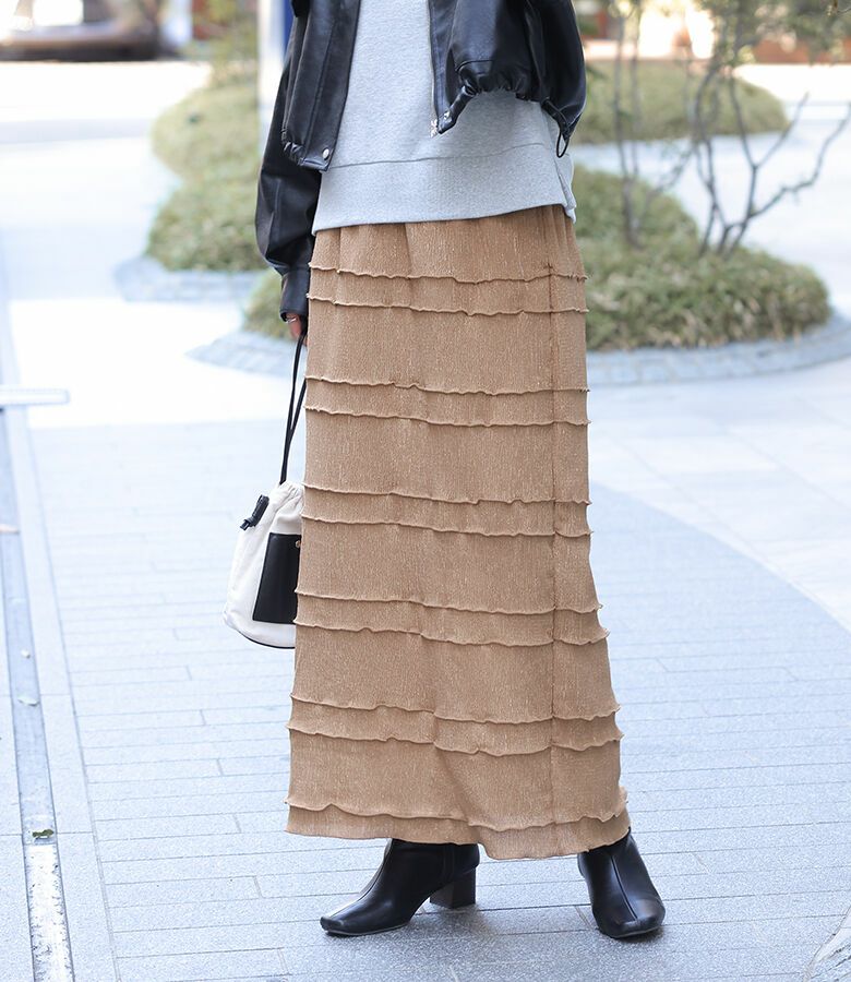 オンにもオフにも使えるシンプルなメロースカート。