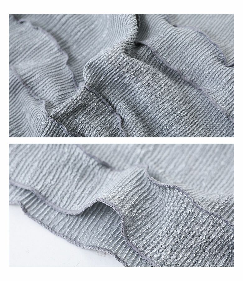 伸縮性があり、凹凸のある表面感が軽やかな印象の生地感。さらりとした裏地付きで、安心してご着用いただけます。