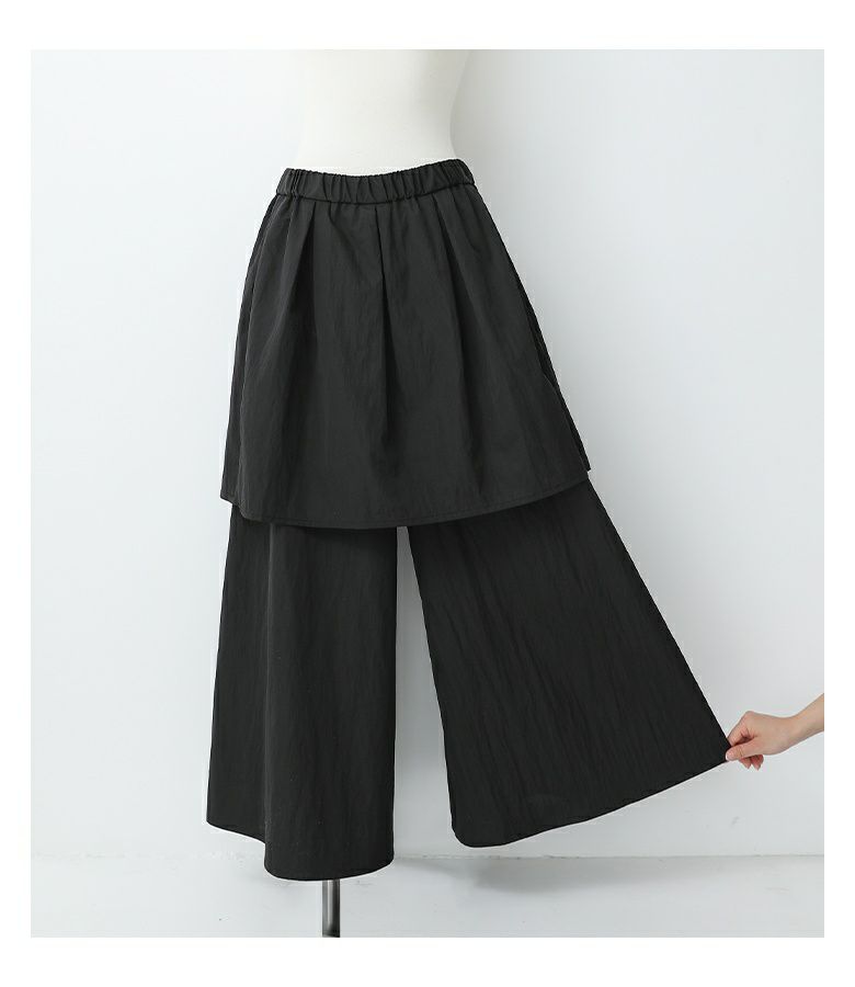 動きやすさと女性らしさを兼ね備えたタックスカートドッキングパンツ。