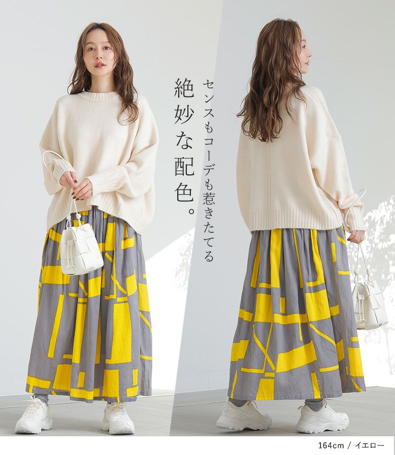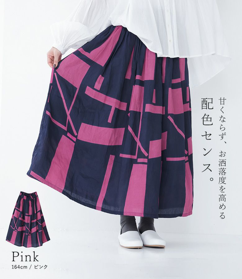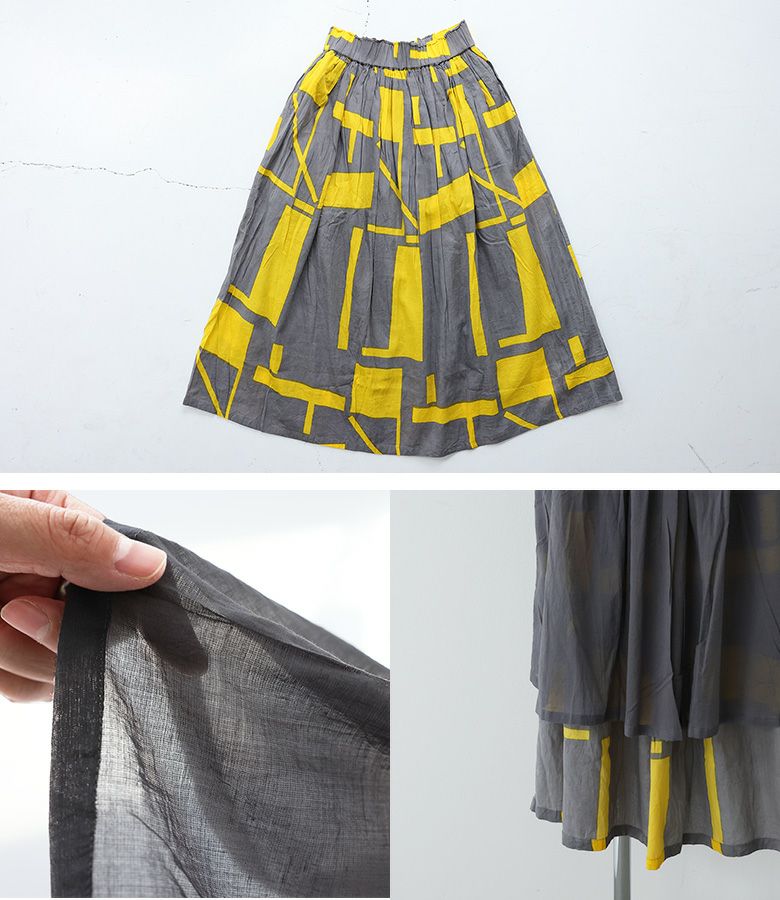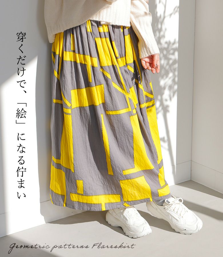 『30%OFFセール★OUKA SELECT幾何学プリントギャザースカート』