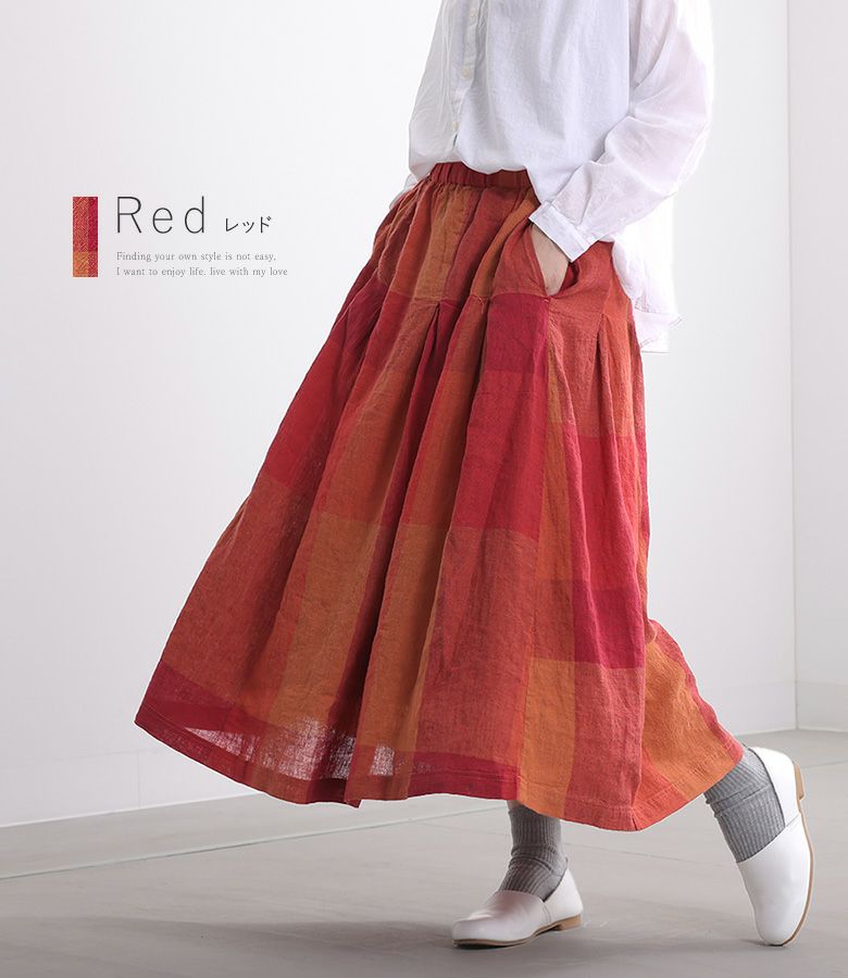 『50%OFFセール★OUKA SELECTコットンリネンブロックチェックスカート』