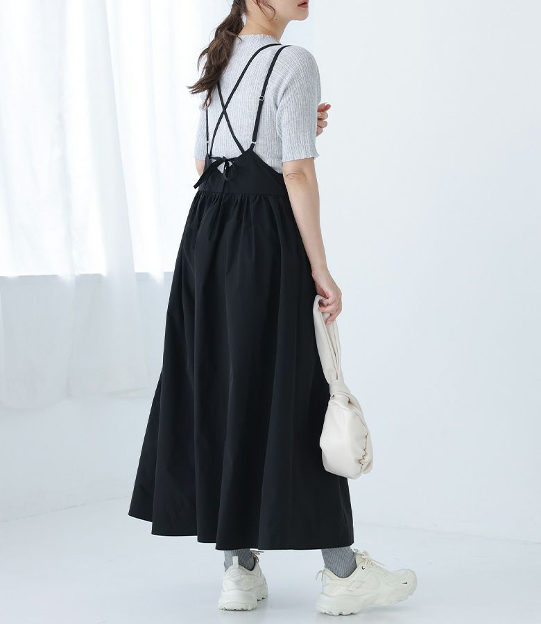 肩紐はかなりゆとりがあるので、もう少し長さを出せば着丈+5cmほどは調整が可能でした。