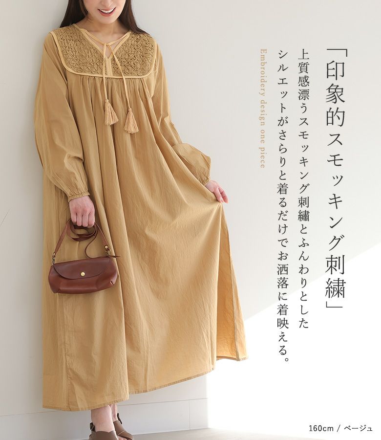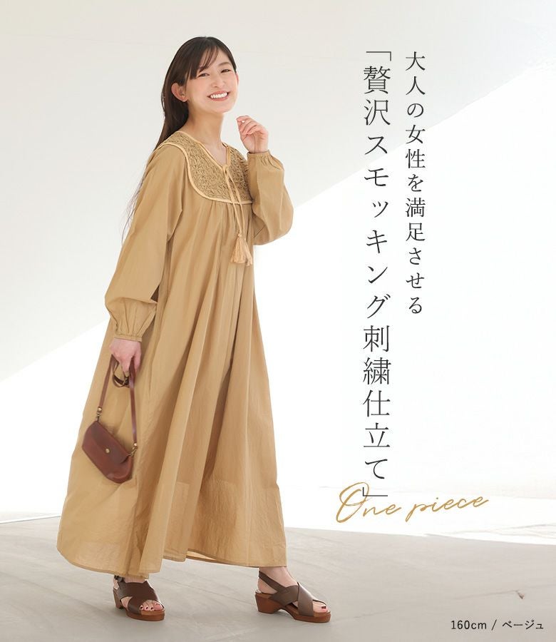 他の画像を見る 期間限定セール★特別SALE開催中!! 『50%OFFセール★OUKA SELECTスモッキング刺繍コットンワンピース』※返品交換不可※【メール便不可】【30】 定価 ¥ 9,790 のところ ¥ 4,895 税込 (0)