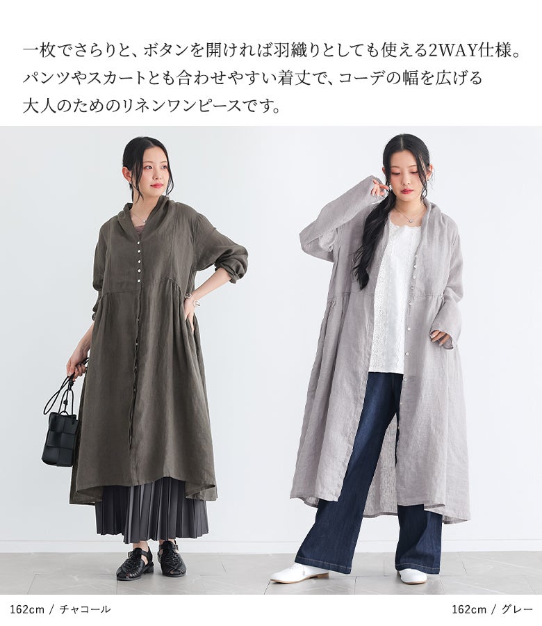 他の画像を見る コーデの幅を広げるリネンシャンブレーガウンカラーワンピース。 『リネンシャンブレーガウンカラーワンピース』【メール便不可】【20】 ¥ 15,180 税込 販売開始前です。 販売期間 2026/03/11 10:00 〜 2027/03/04 23:59 (0)