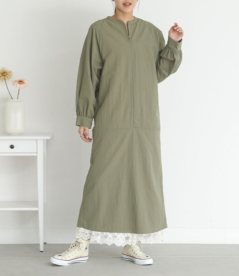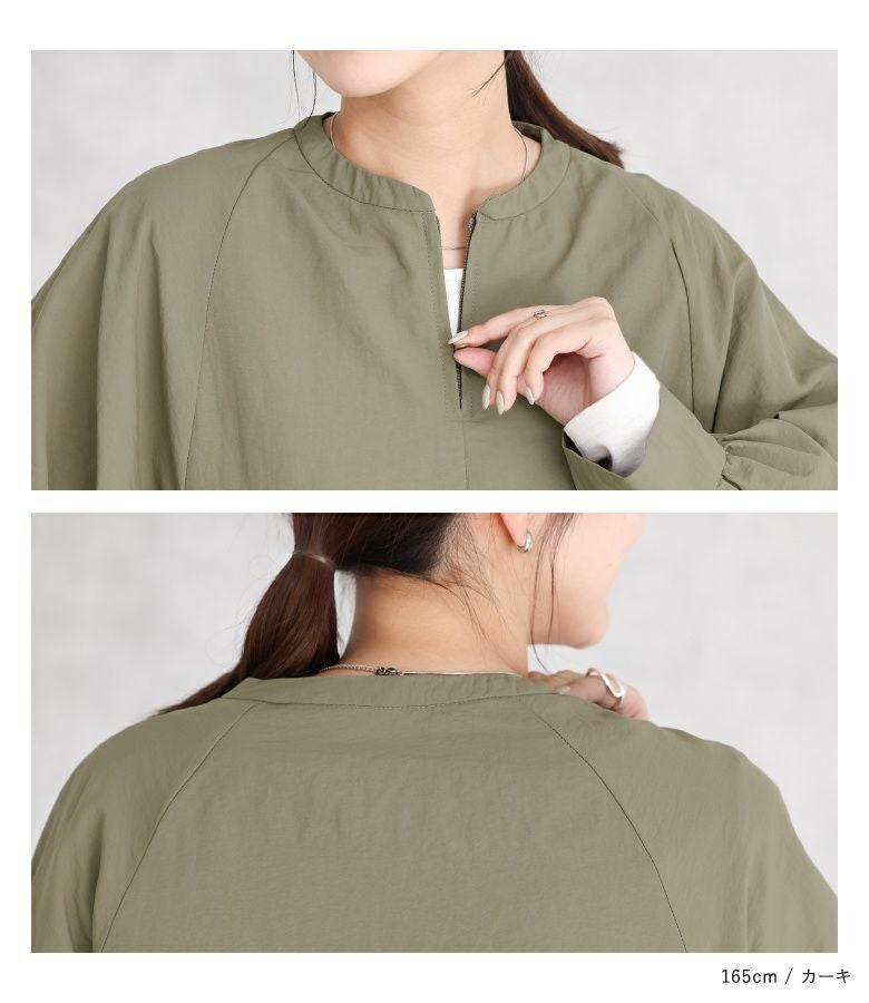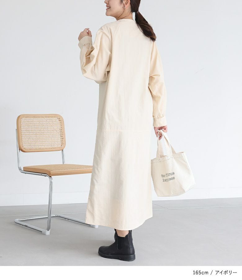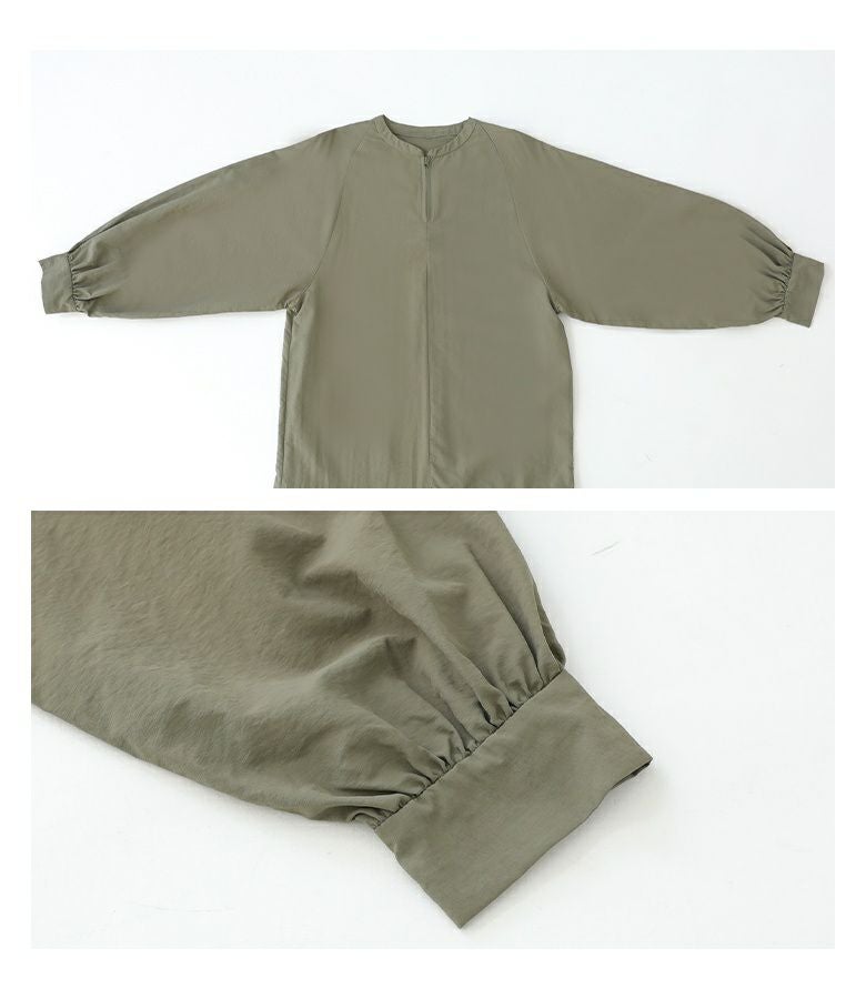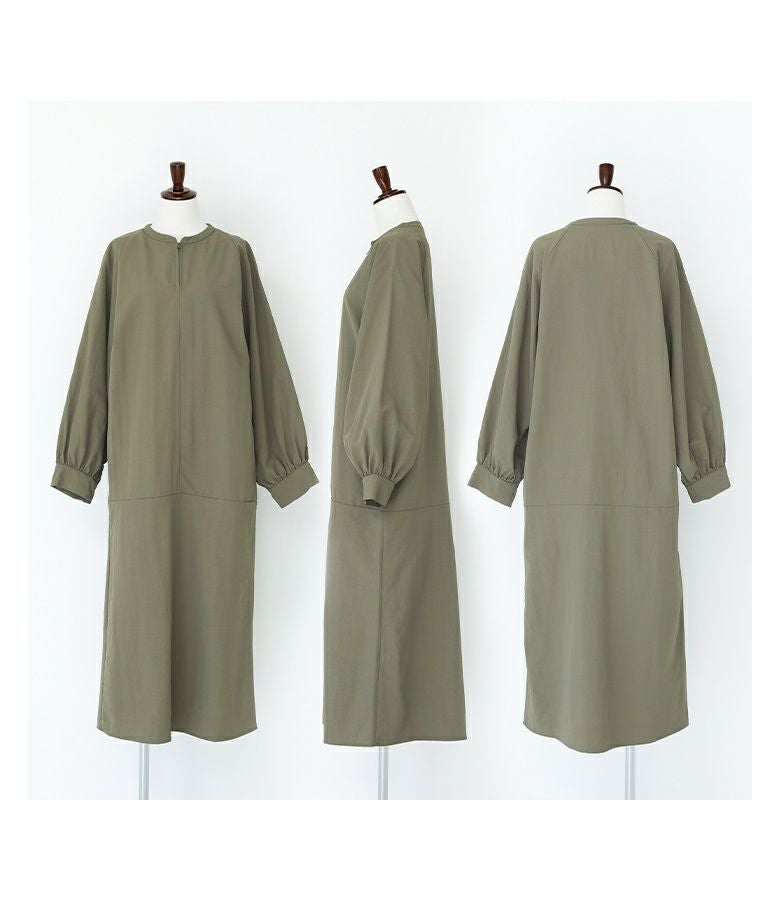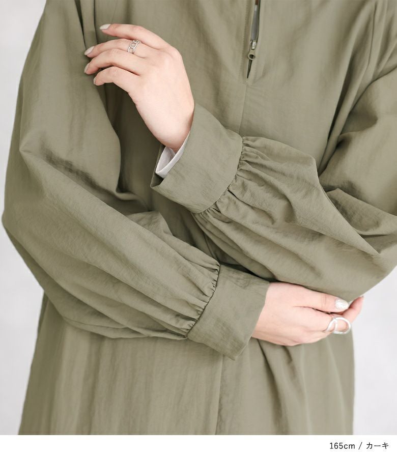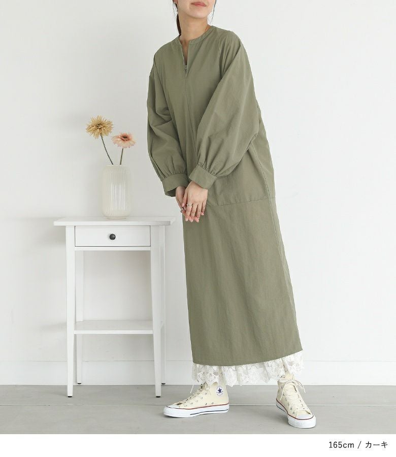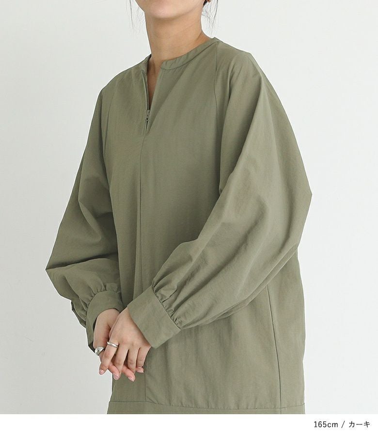 リラックスした雰囲気をお楽しみいただける、さらっと軽い生地感のワンピース。襟元のファスナーがアクセントになり、一枚でお洒落が完成します。