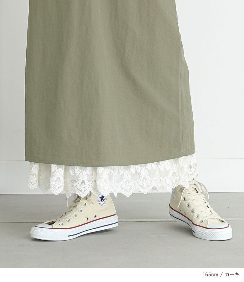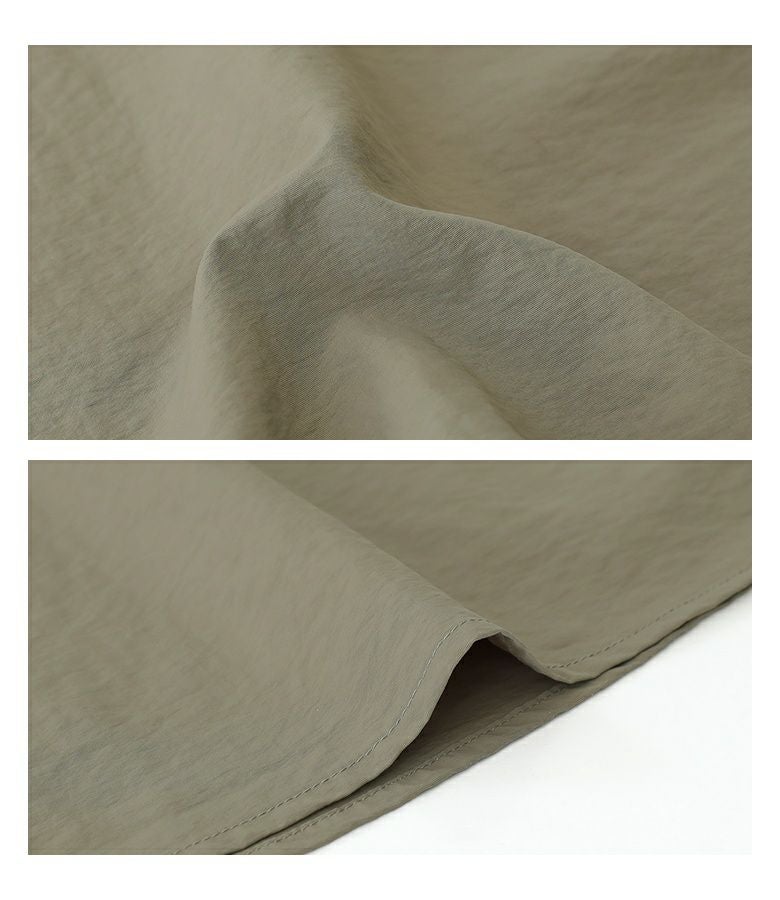 軽やかでシャカシャカとした触り心地の、ナイロン100%生地を使用。程よい厚みなので、一枚でも重ね着をしていただいても快適にお過ごしいただけます。
