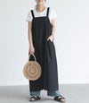 広がりすぎないシルエットで大人カジュアルに着られるワンピース。後ろはリボンでお好きなシルエットに調節できるデザインで両サイドには嬉しい便利なポケット付きです。