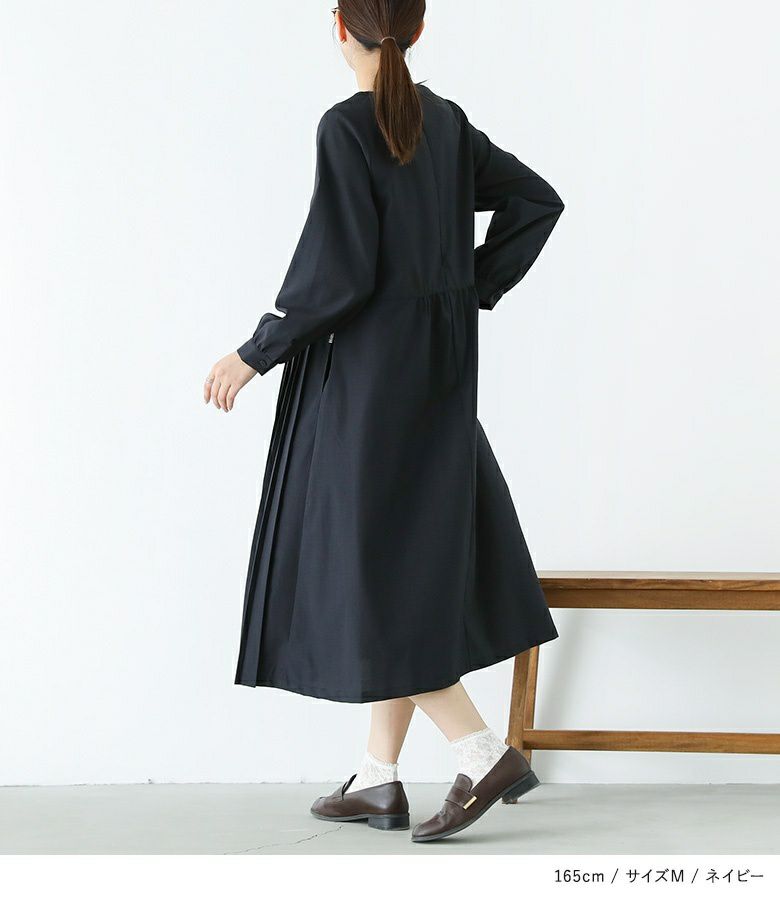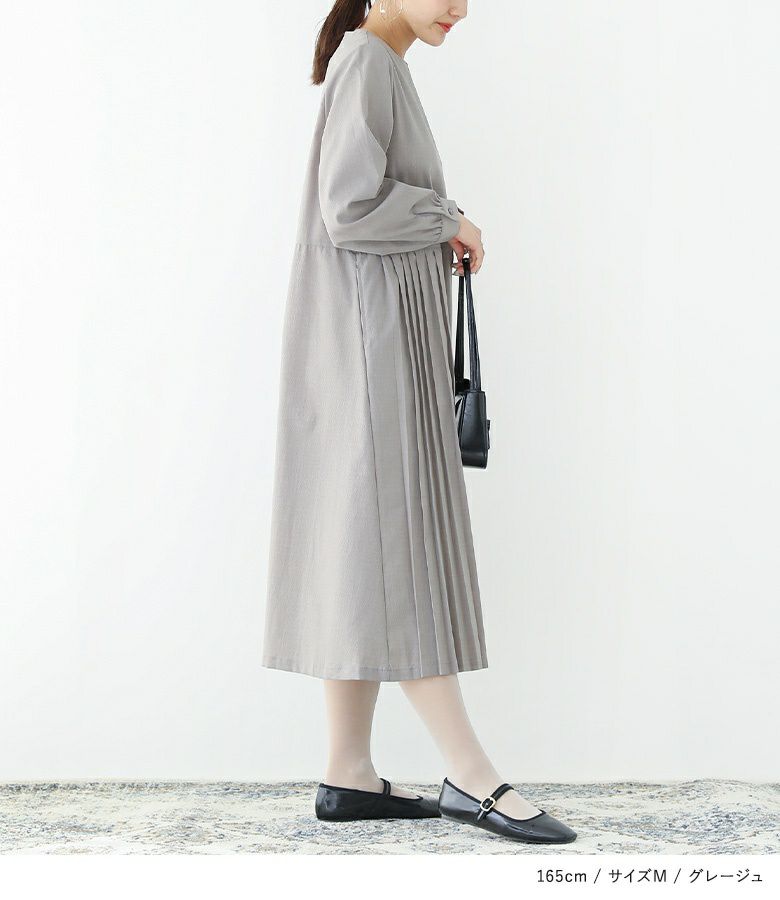 シンプルで上品な雰囲気のあるプリーツワンピース。
