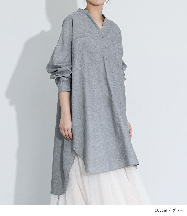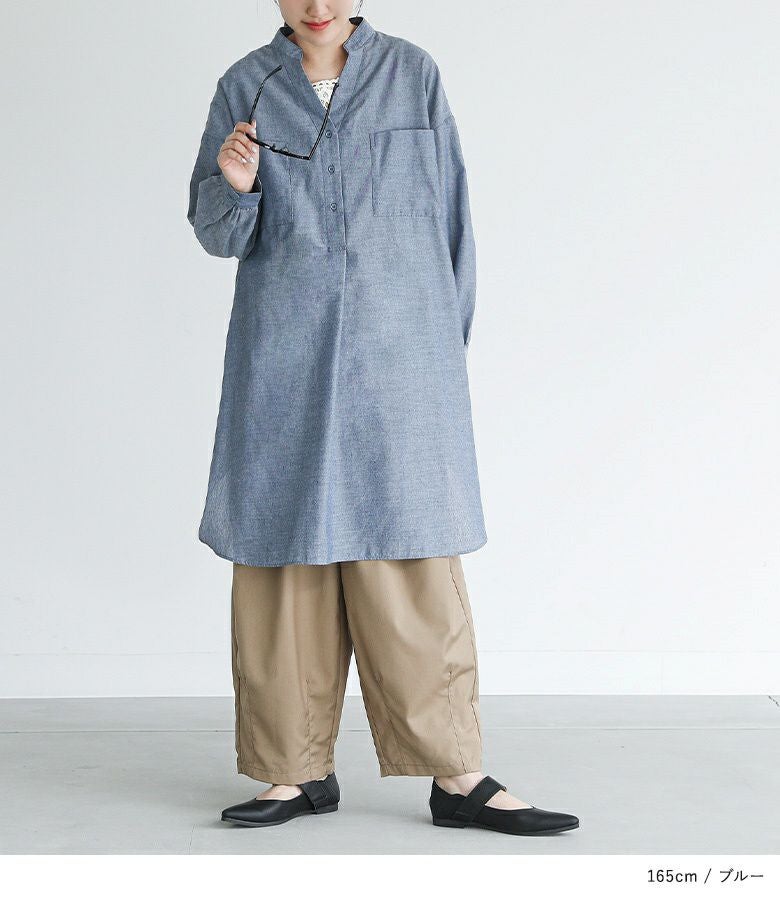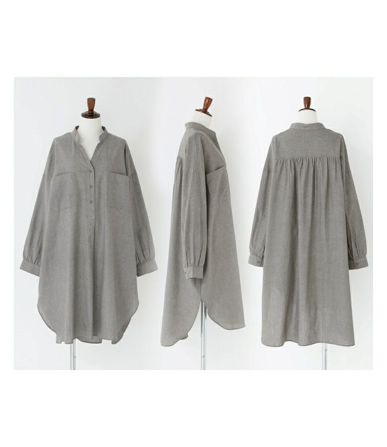 ゆるっとしたワンピースなので細身のパンツとスニーカーを合わせた大人カジュアルや、抜け感のあるスカートと合わせてナチュラルにしてみたりと様々なアイテムと相性抜群の一枚です。