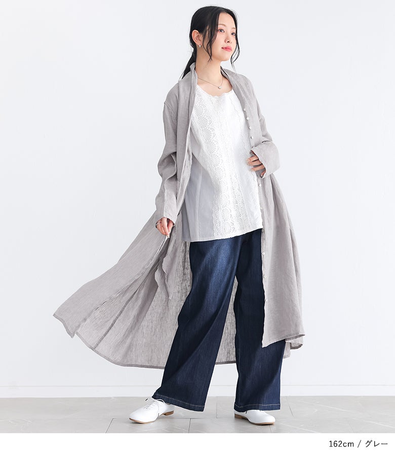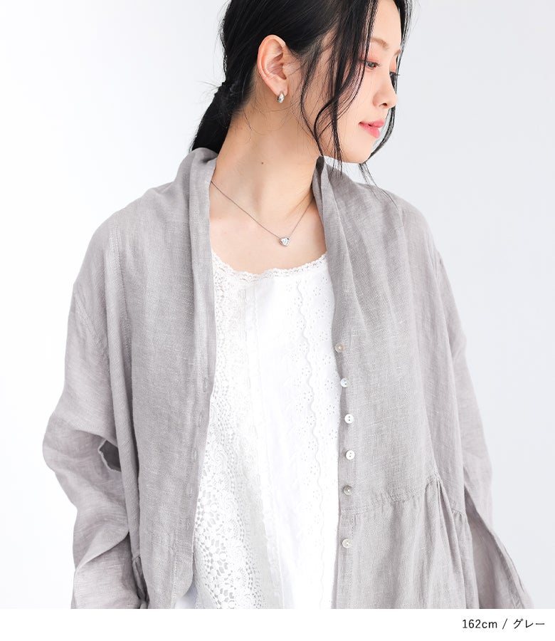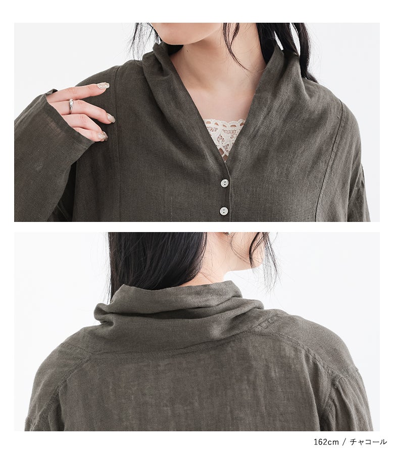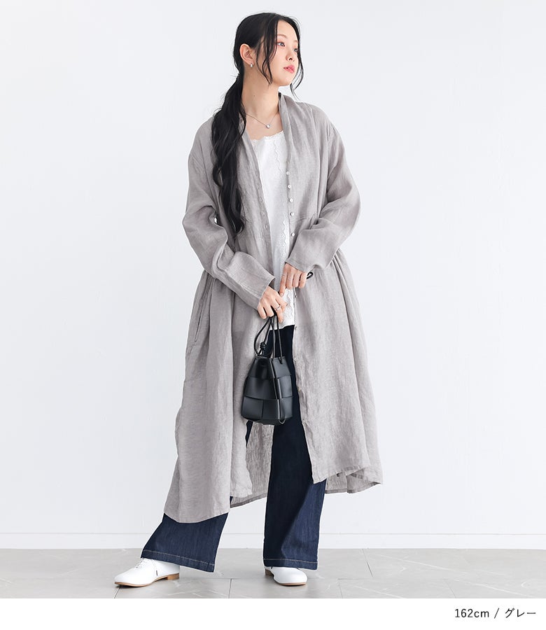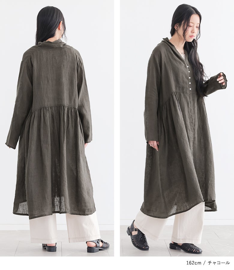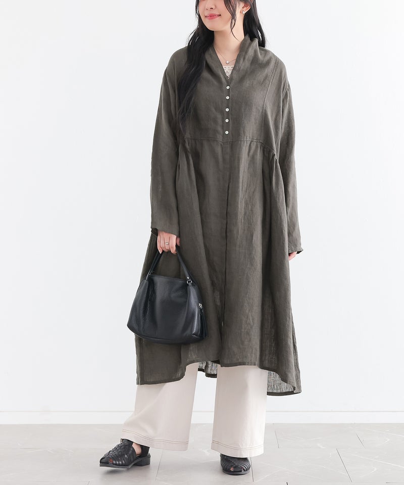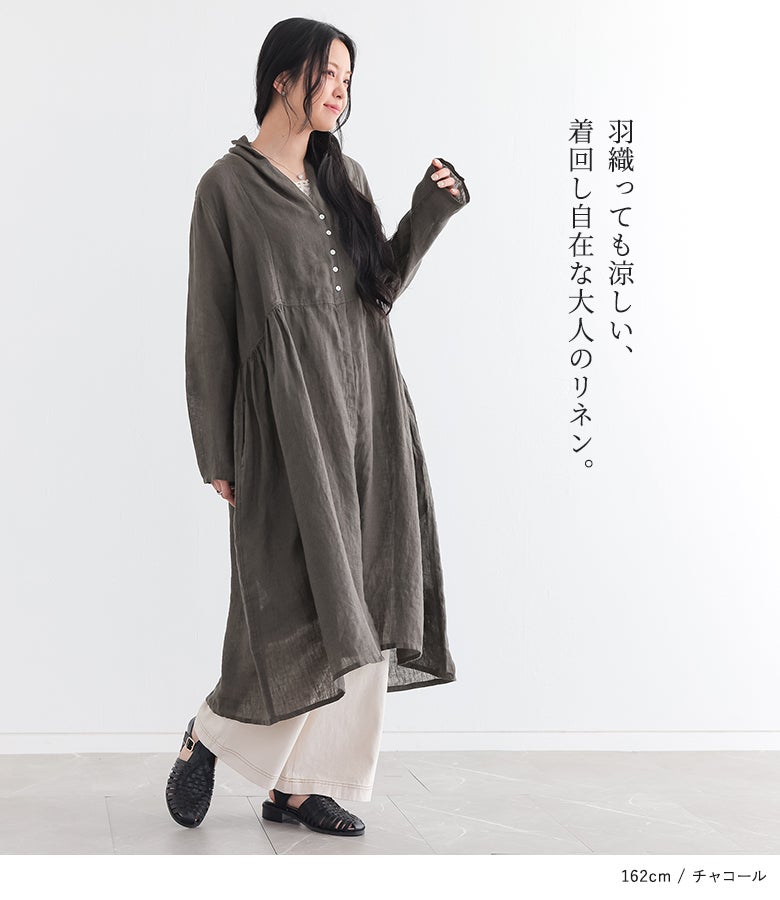 コーデの幅を広げるリネンシャンブレーガウンカラーワンピース。