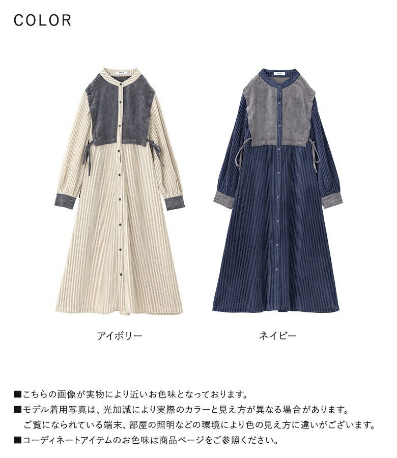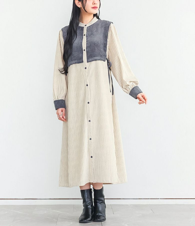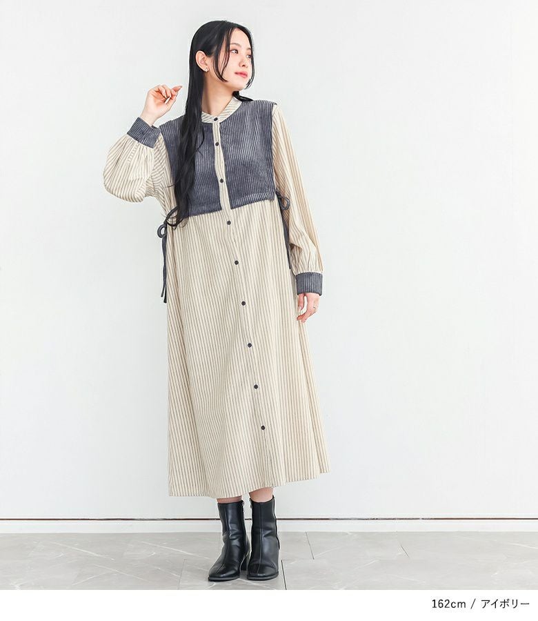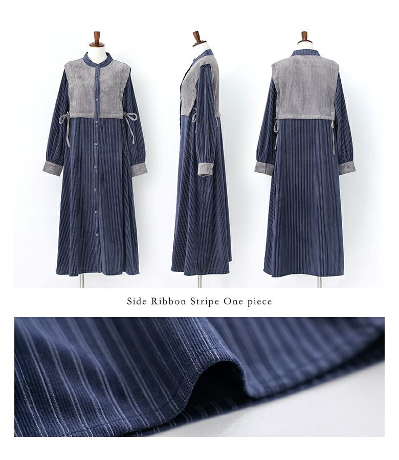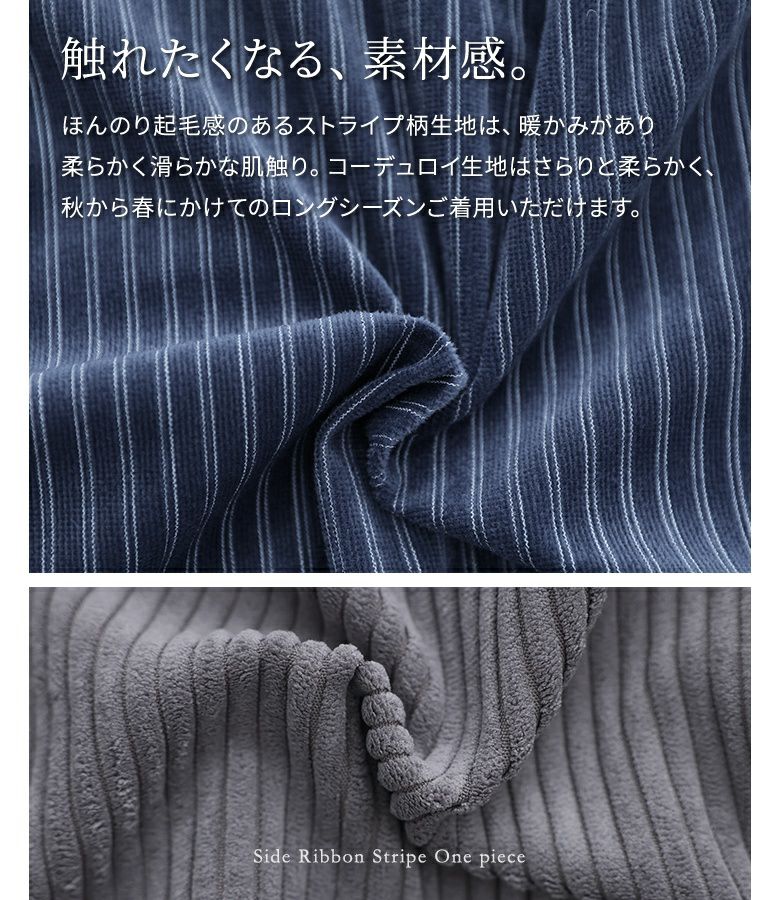 『サイドリボン異素材ストライプワンピース』