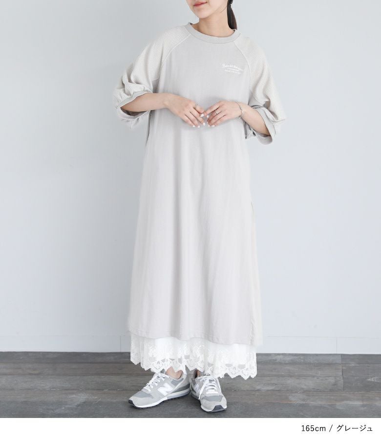 ワンピースとして楽に着られるのはもちろん、ワンピースの下にペチワンピやパンツをレイヤードすることで雰囲気を変えられるので、色々な合わせ方で着用いただけます。