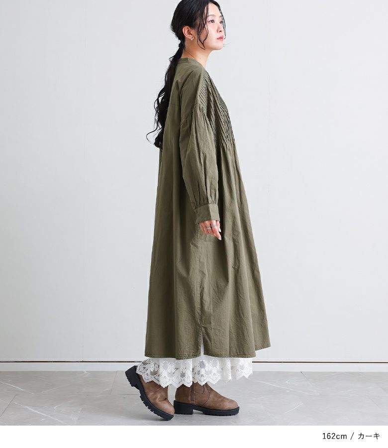 リラックスした着心地のヘンリーネックピンタックワンピース。