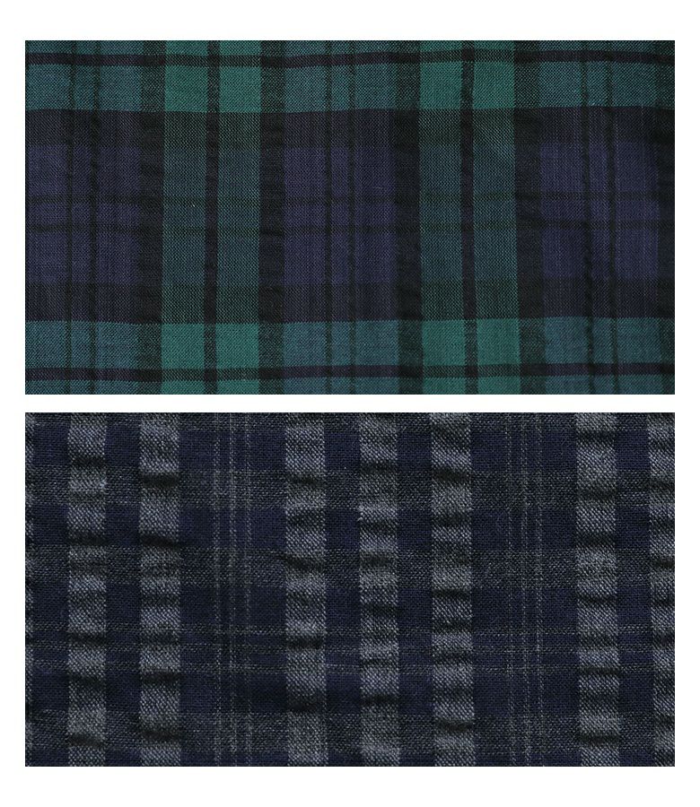 表面に凹凸のある、やや薄手のサッカー生地。柔らかくさらりとした素材感で、快適な着心地が魅力です。
