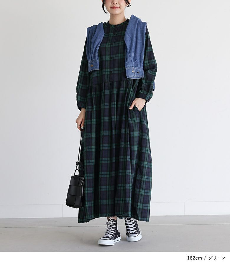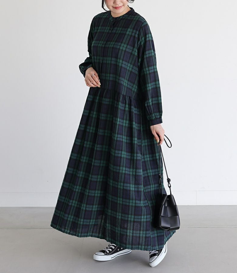 さらりと心地よい、ゆったりシルエットのチェック柄ワンピース。