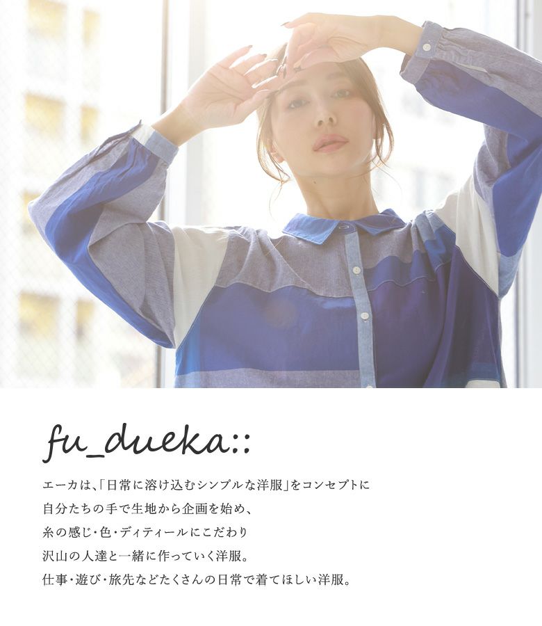 エーカは、「日常に溶け込むシンプルな洋服」をコンセプトに自分たちの手で生地から企画を始め、糸の感じ・色・ディティールにこだわり沢山の人達と一緒に作っていく洋服。