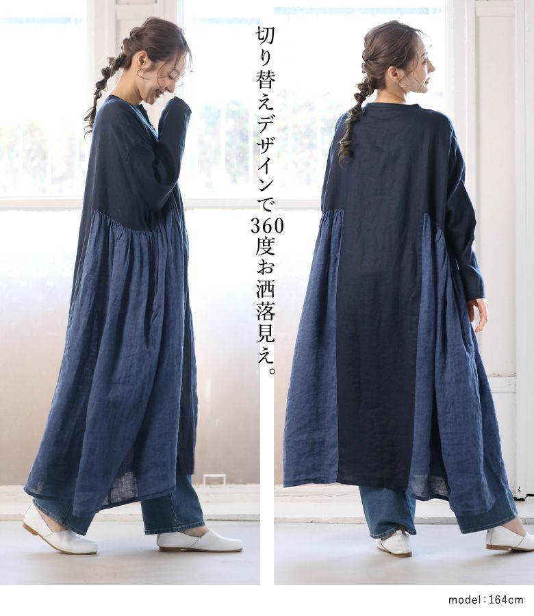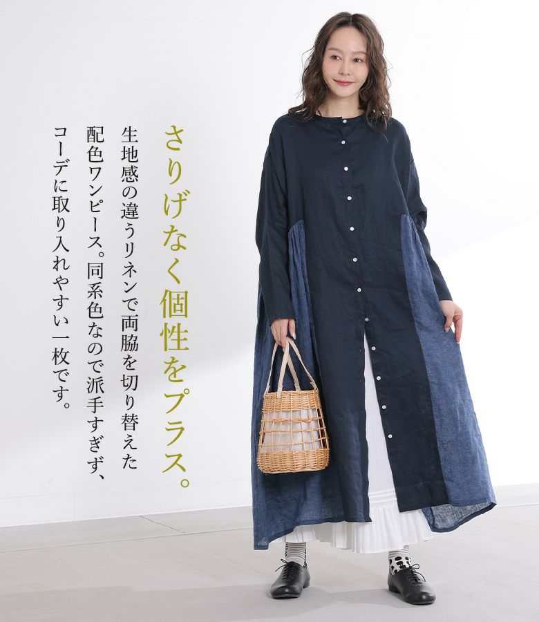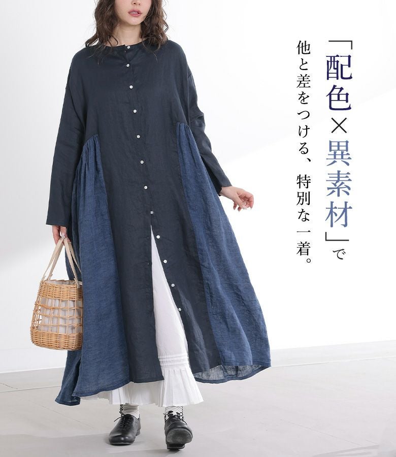 『30%OFFセール★OUKA SELECT配色ギャザーワンピース』