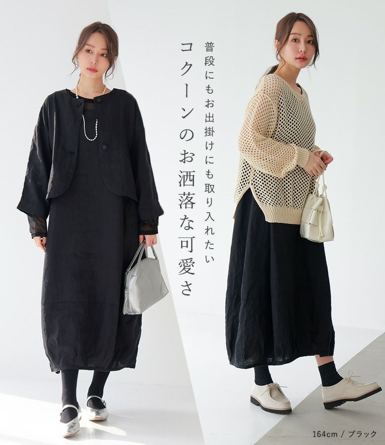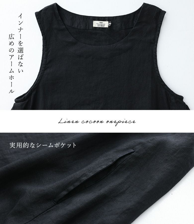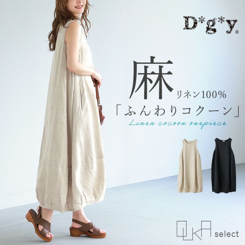 『40%OFFセール★OUKA SELECTリネンコクーンノースリワンピース』