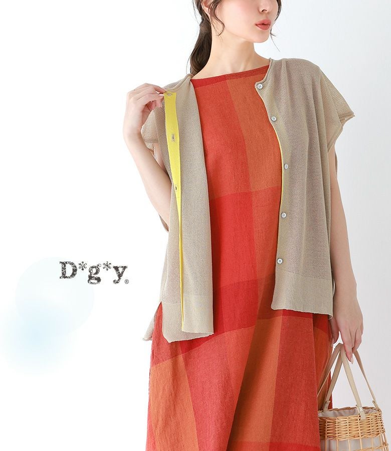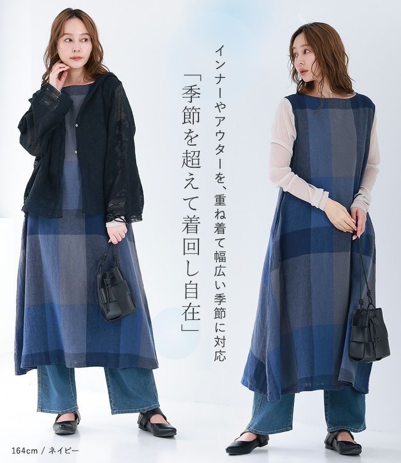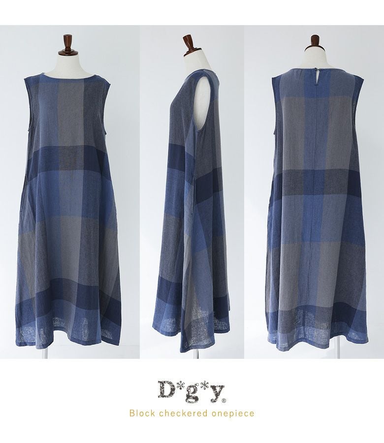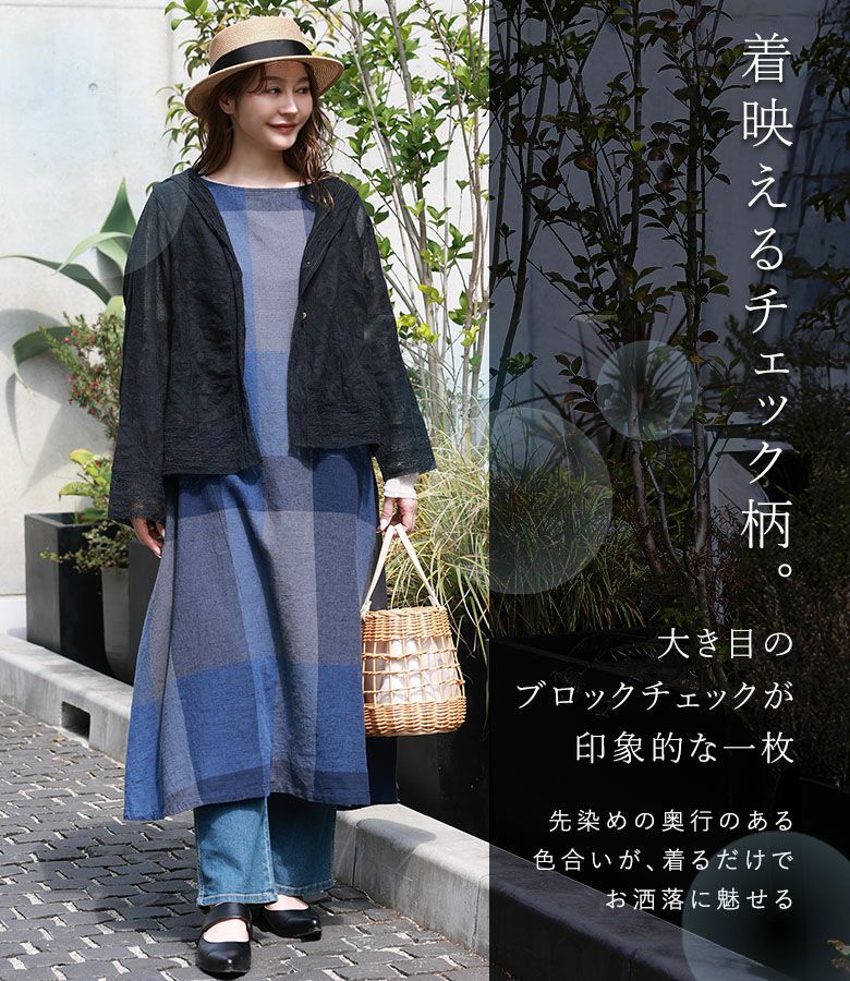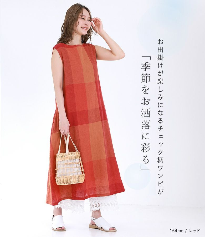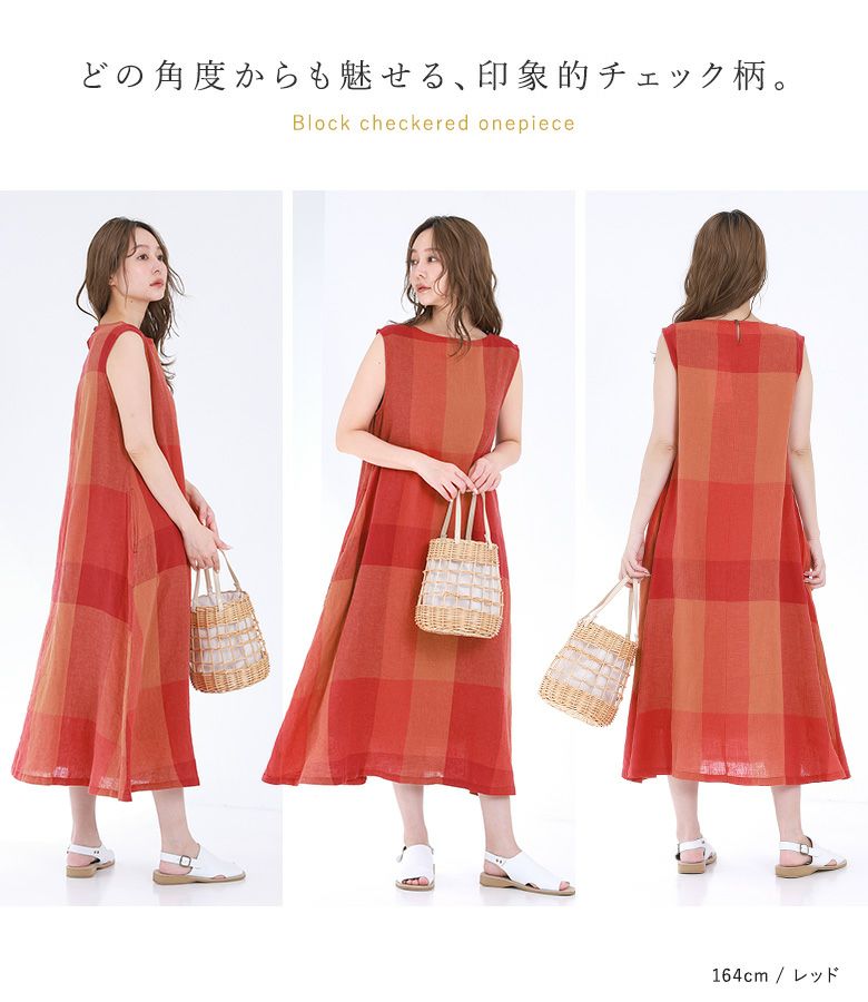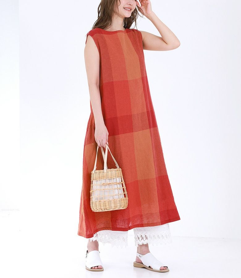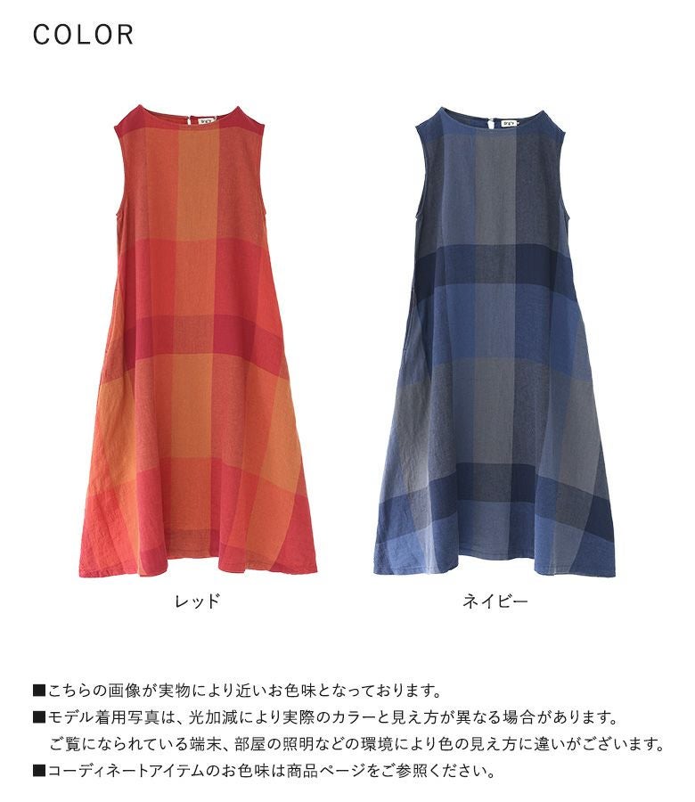 『50%OFFセール★OUKA SELECTリネンコットンブロックチェックワンピース』