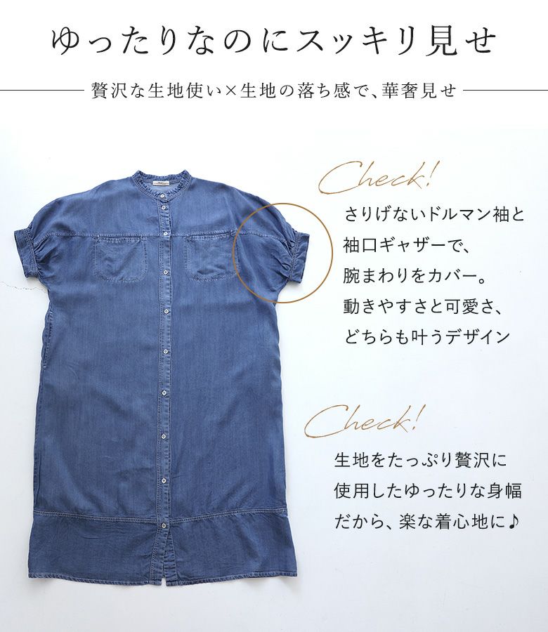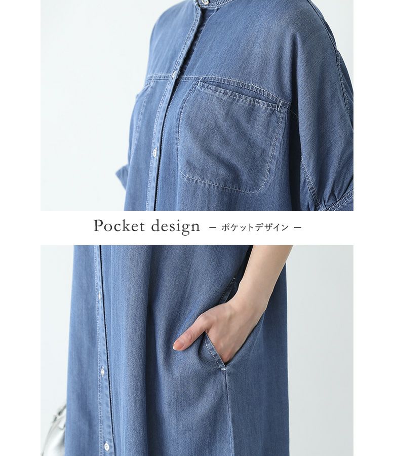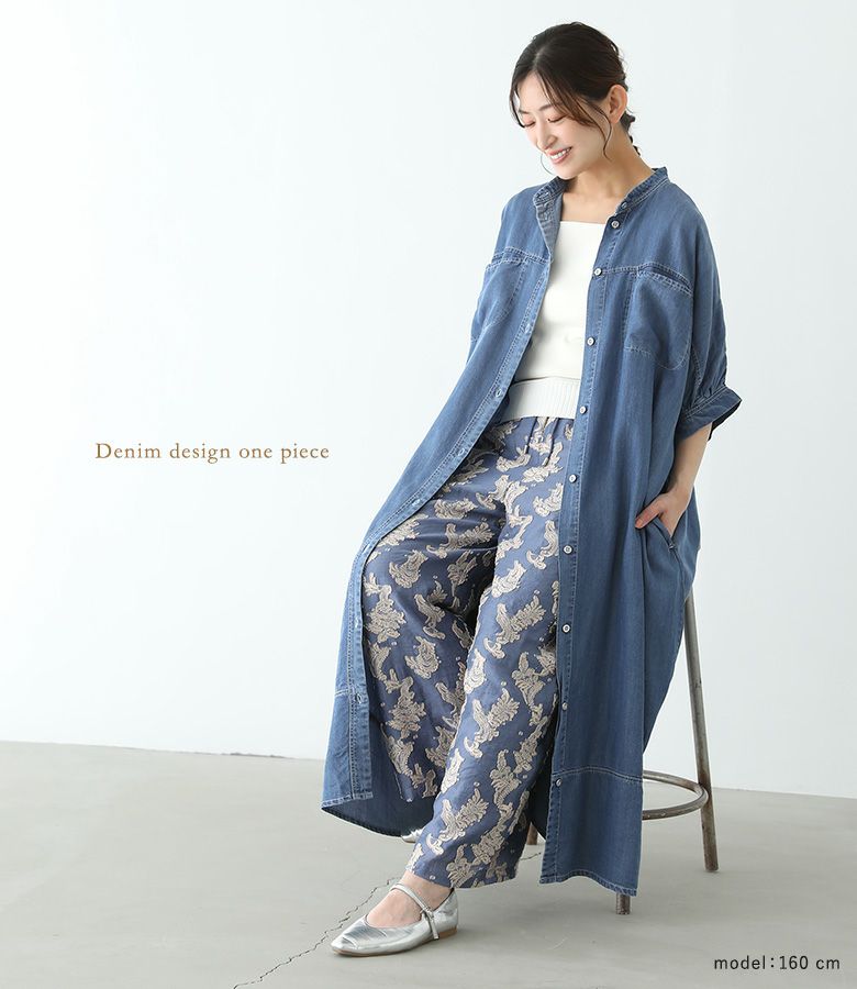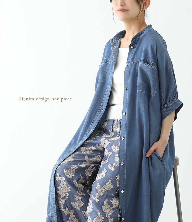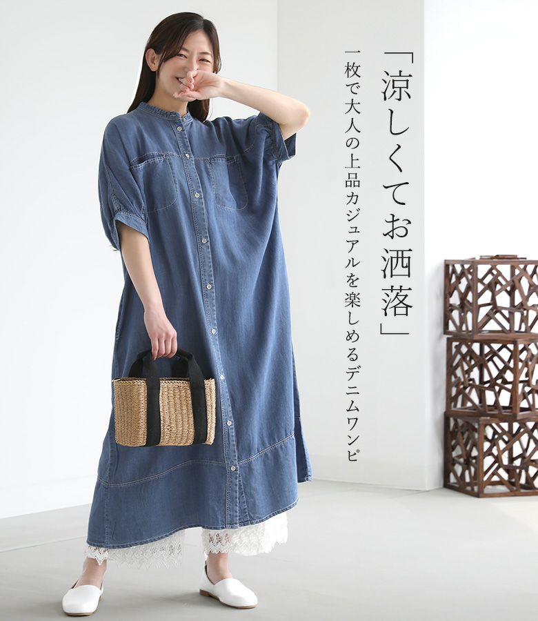 『40%OFFセール★OUKA SELECTデニムバンドカラーワンピース』