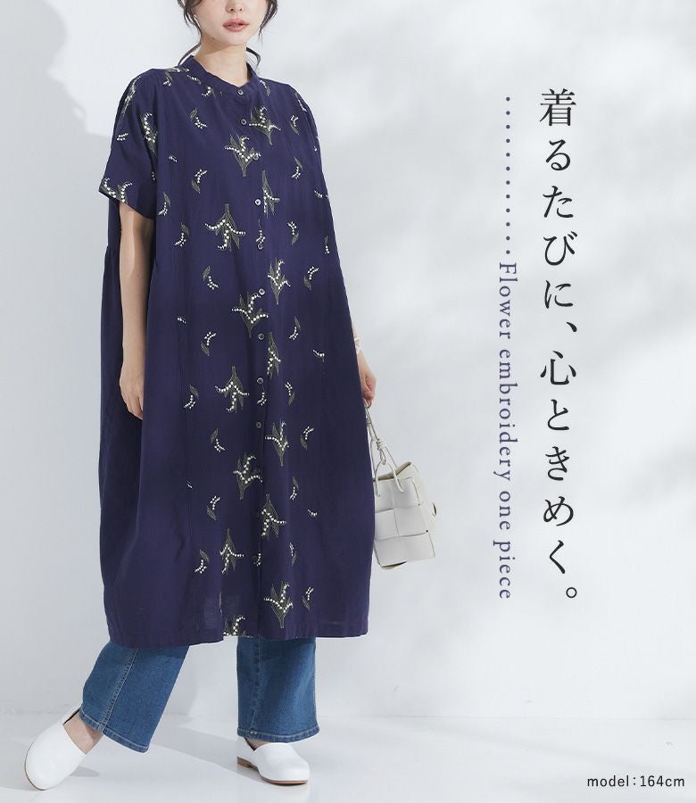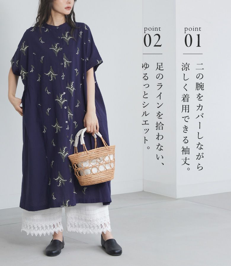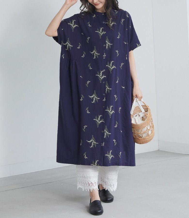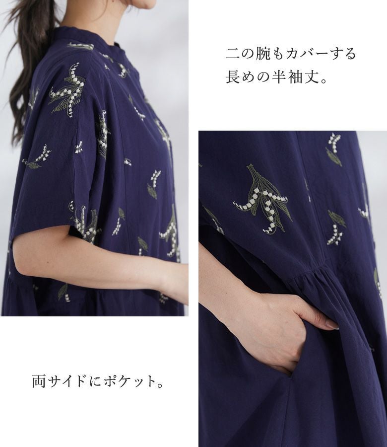 『30%OFFセール★OUKA SELECT5分袖刺繍ワンピース』
