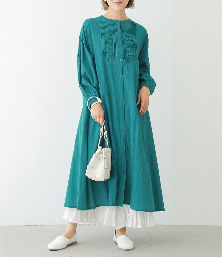 『50%OFFセール★OUKA SELECTピンタックコットンワンピース』