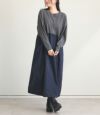 『OUKA SELECTウール混ニットコンビギャザーワンピース』