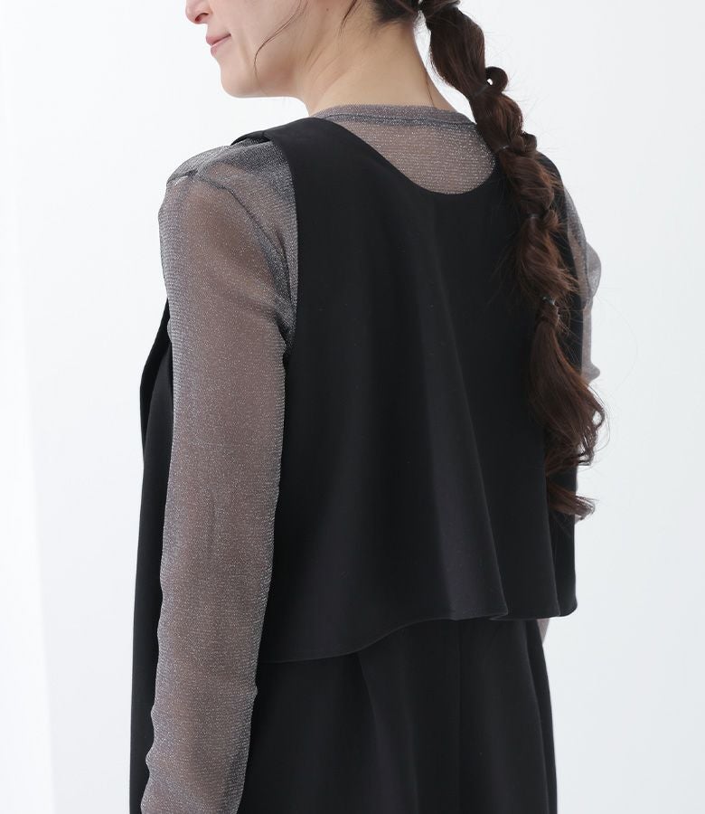 バスト位置に合わせてボタン真ん中で留めました。身幅にゆとりがあり、インナーと合わせても着膨れせずスッキリと着られました♪