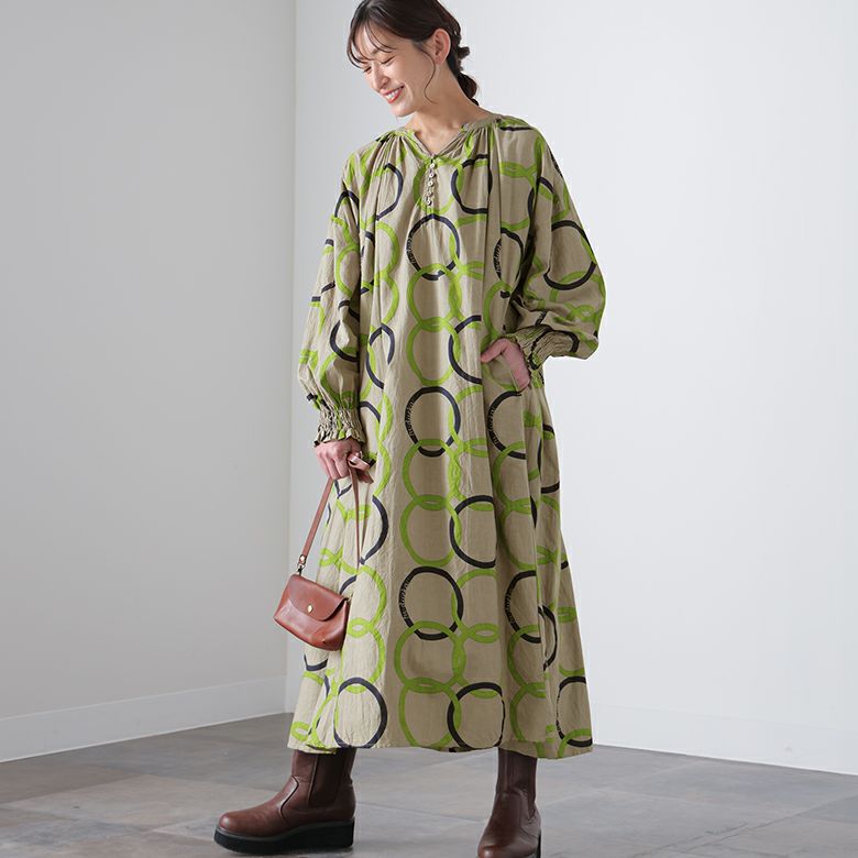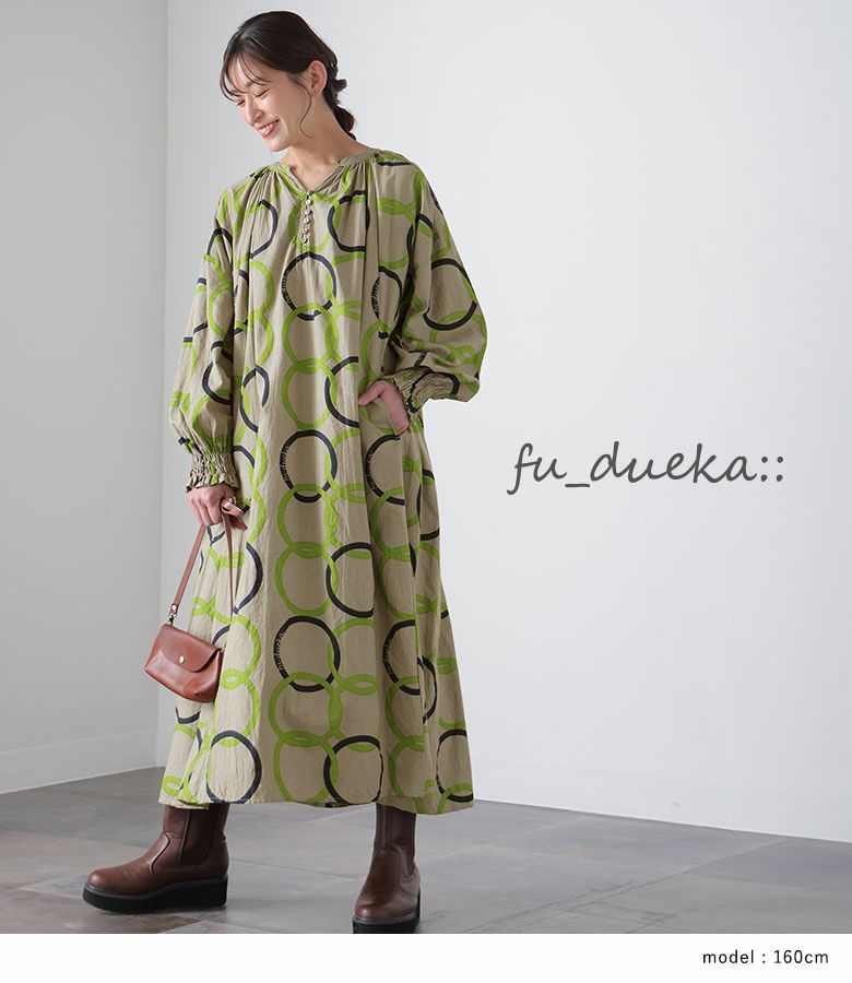 『30%OFFセール★OUKA SELECT リングドットプリントギャザーワンピース』