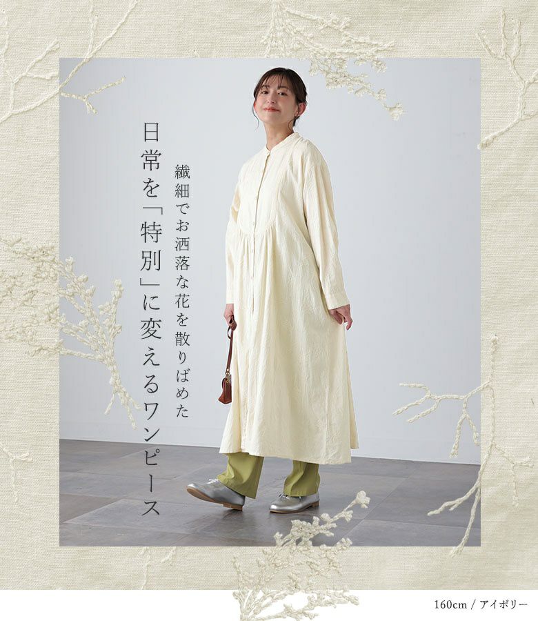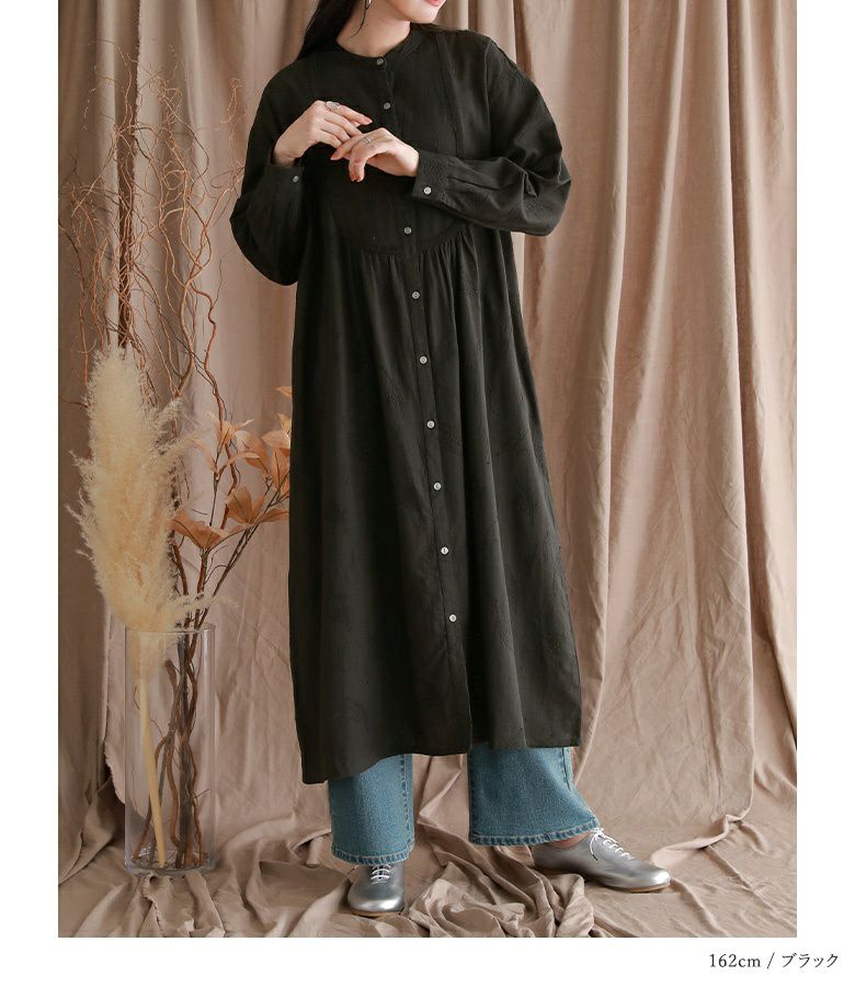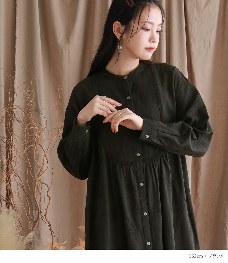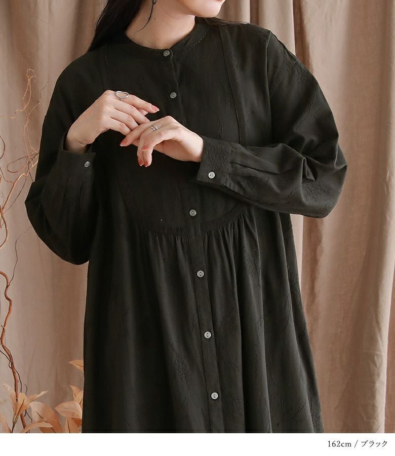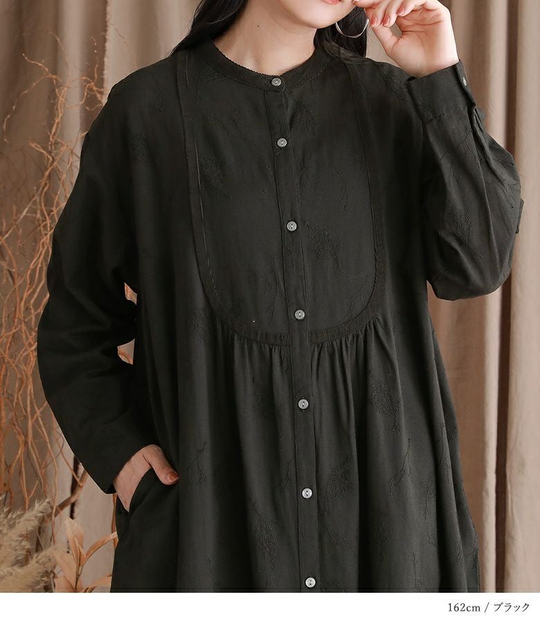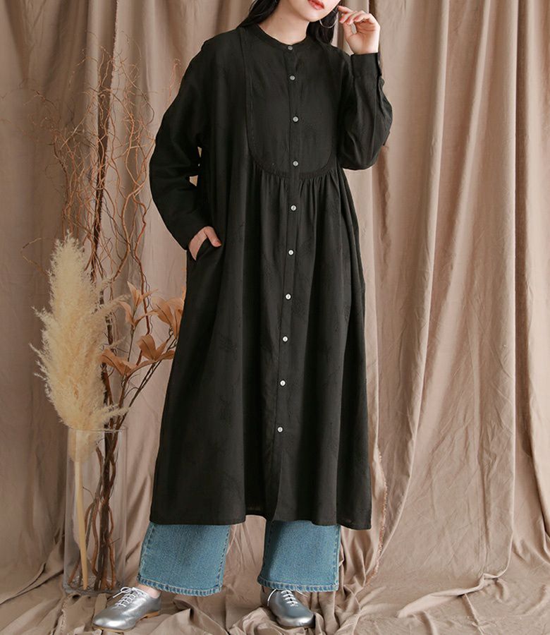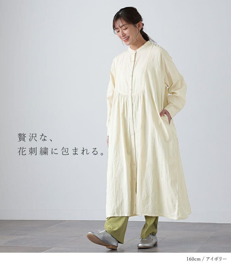 『50%OFFセール★OUKA SELECT ステッチ刺繍ロングシャツワンピース』