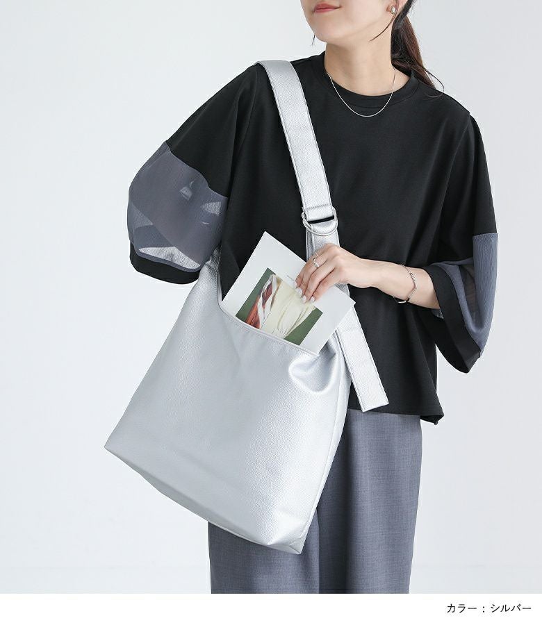 リネンシャツやコットンブラウスなど、やわらかな素材感のトップスを合わせて統一感を出すのがおすすめ。ボトムスにはテーパードパンツや落ち感のあるワイドパンツを合わせることで、ほどよい抜け感のある大人カジュアルスタイルが完成します。シンプルなバッグなので主役の柄ものアイテムに合わせるのもおすすめです。
