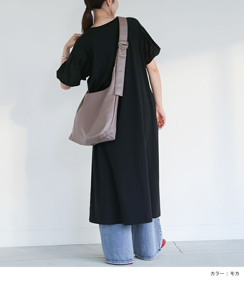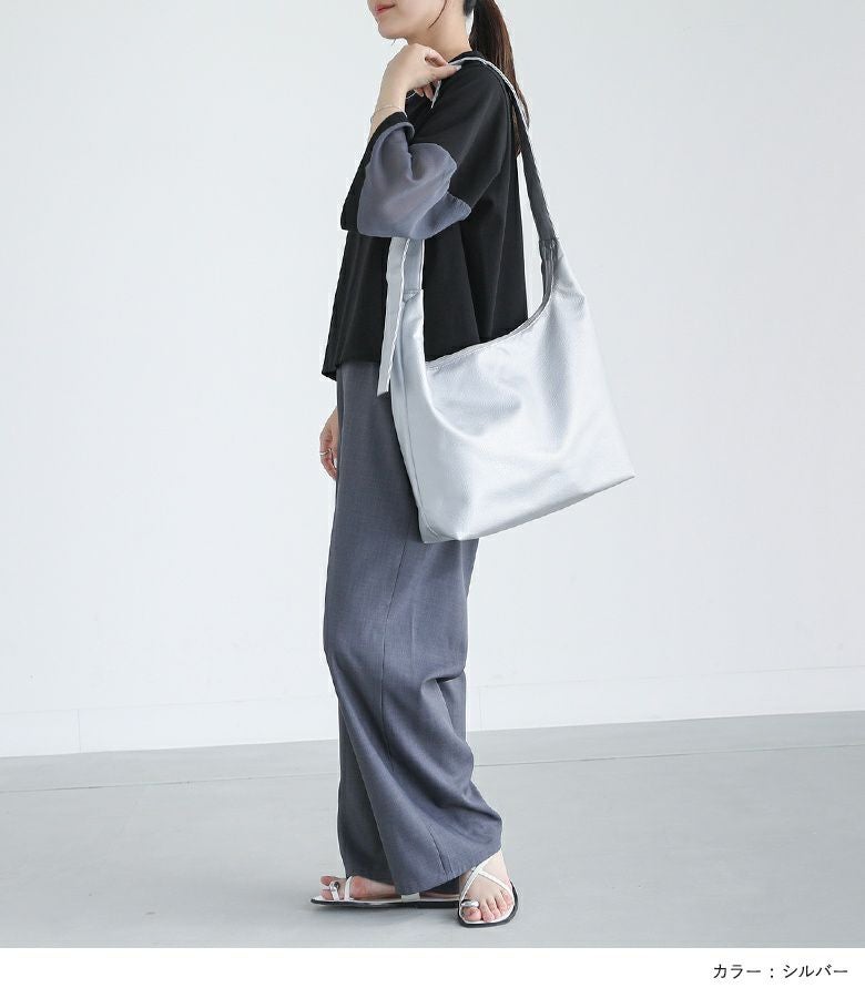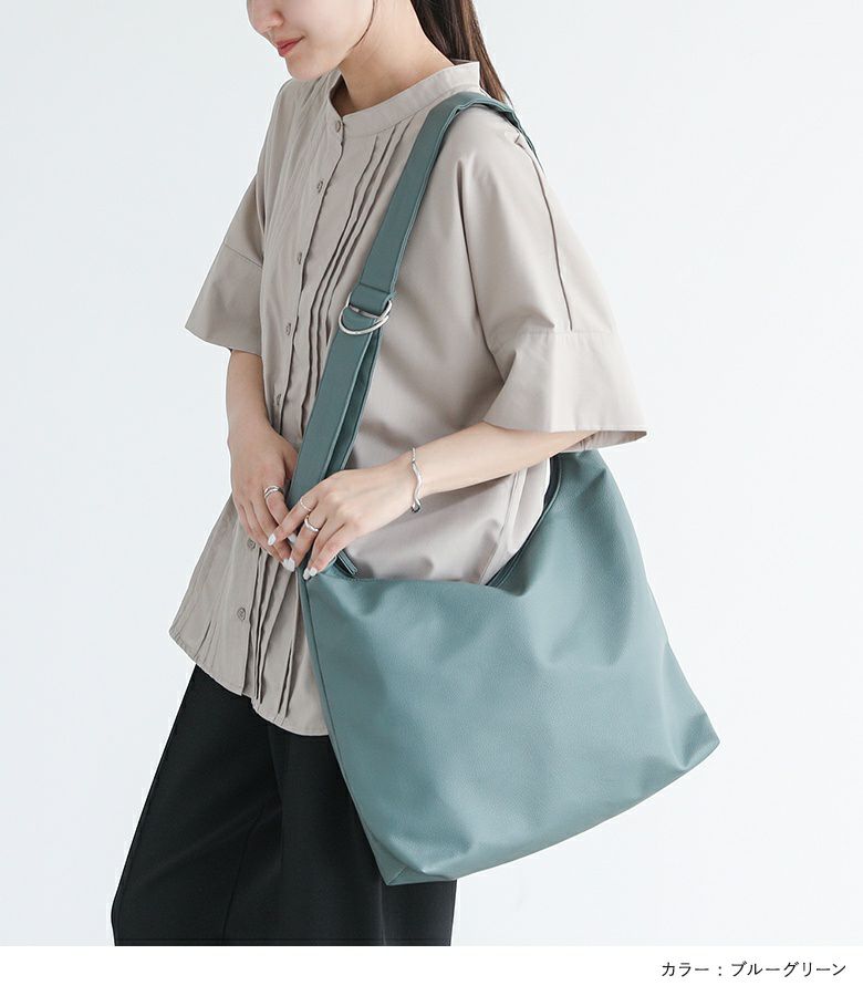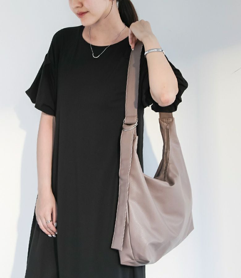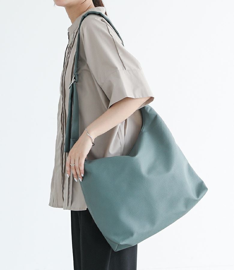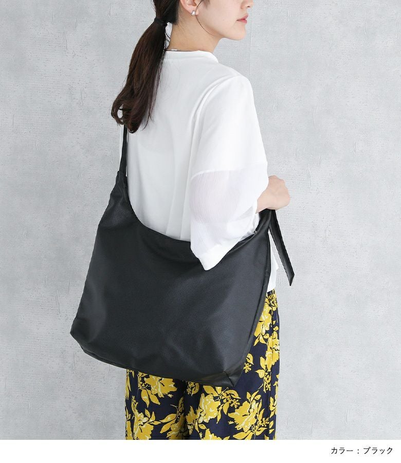 ふんわりとした質感の柔らかい合皮を使用し、身体に自然と馴染む心地よいフィット感を実現したショルダーバッグ。ショルダーストラップにはウレタン素材を内蔵しており、クッション性に優れているため、長時間の使用でも肩への負担が少なく、快適に持ち歩けます。デイリー使いはもちろん、通勤や旅行にもぴったりのアイテムです。