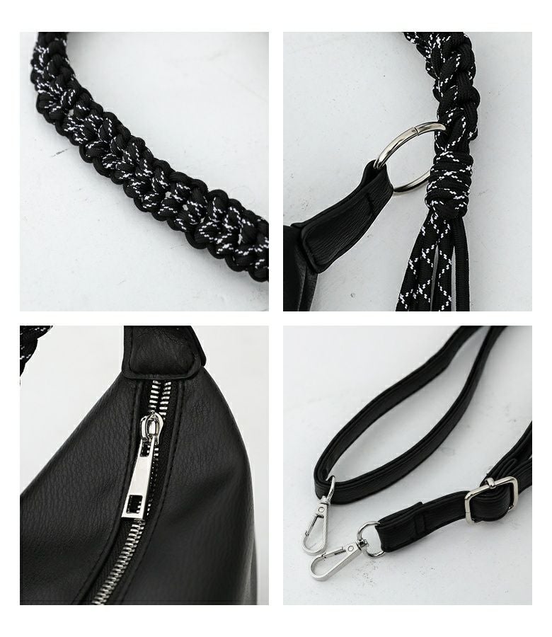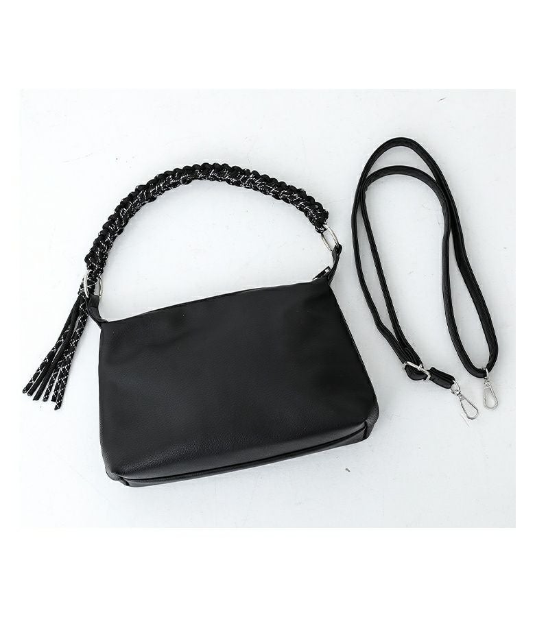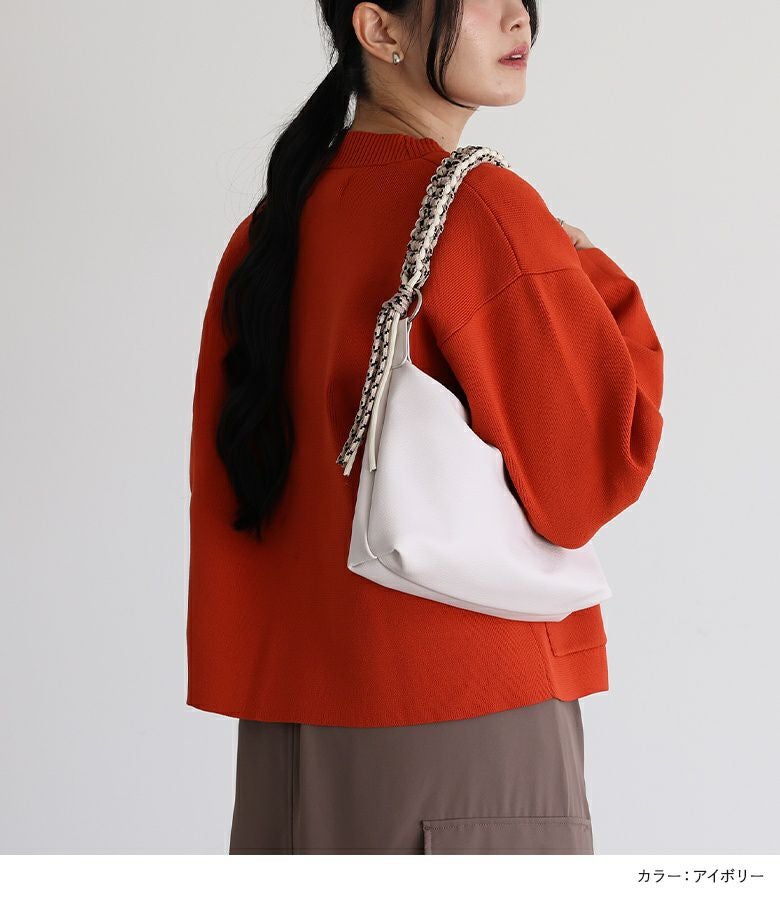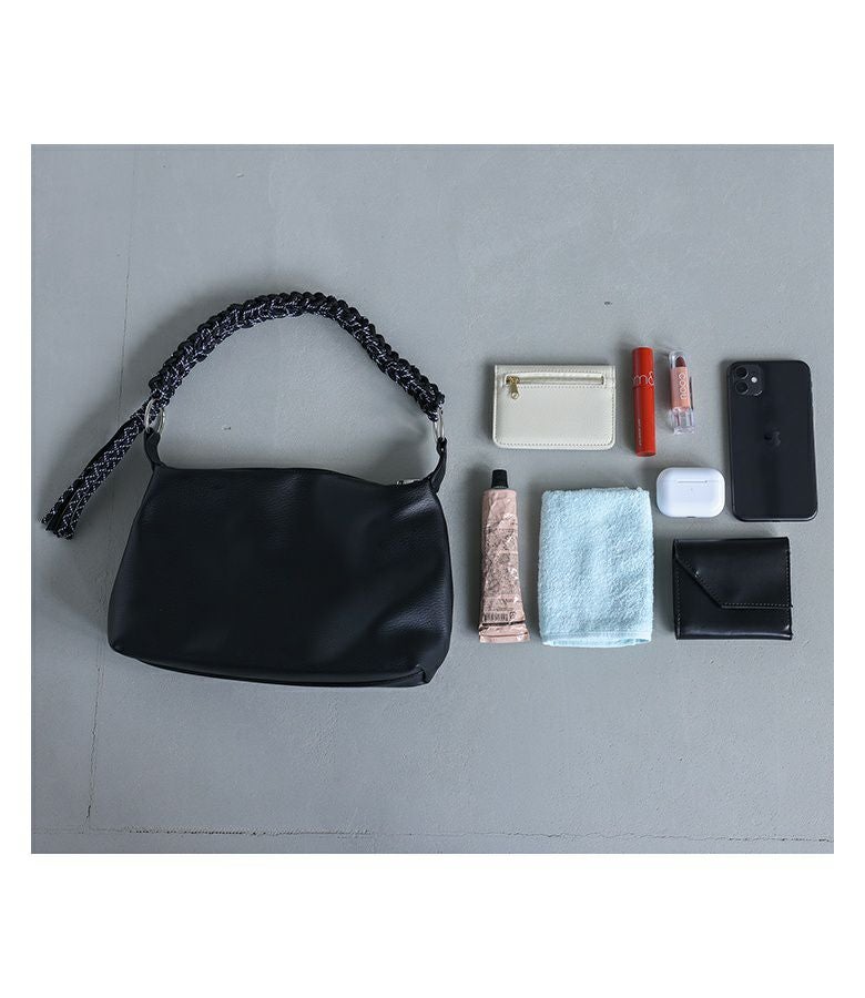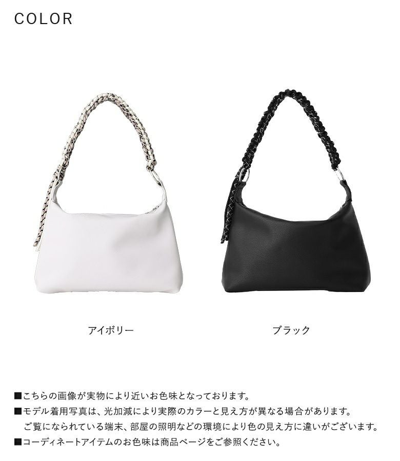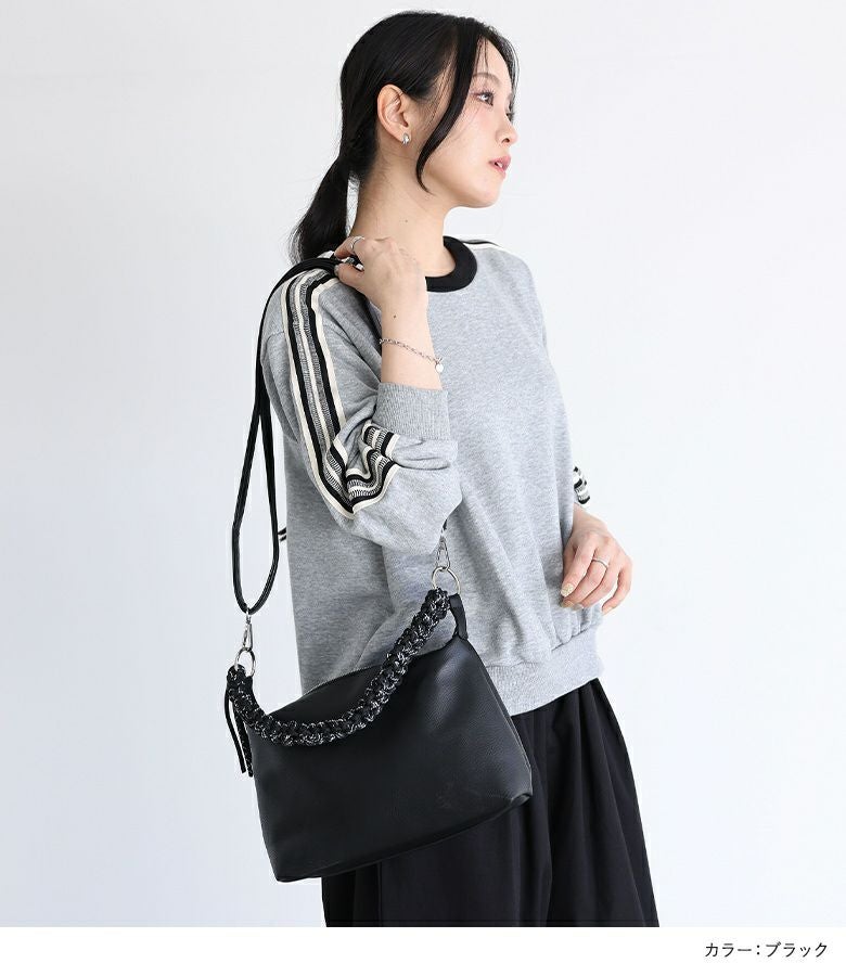 取り外しが可能なショルダーストラップ付きでショルダーバッグとしても、斜め掛けバッグとしても2wayデザインでシーンに合わせて使い分けれるバッグ。コード編みの持ち手部分がポイントです。