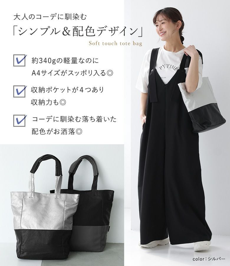 4. 『30%OFFセール★OUKA SELECTバイカラーフェイクレザートート』※返品交換不可※【メール便不可】【20】