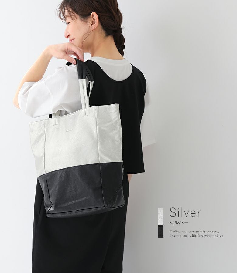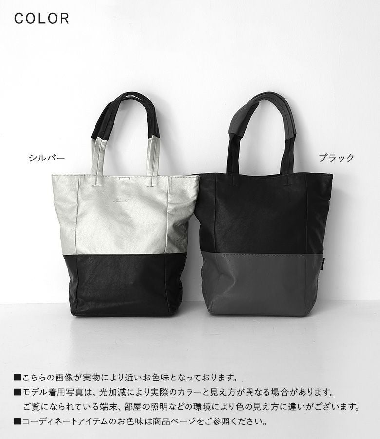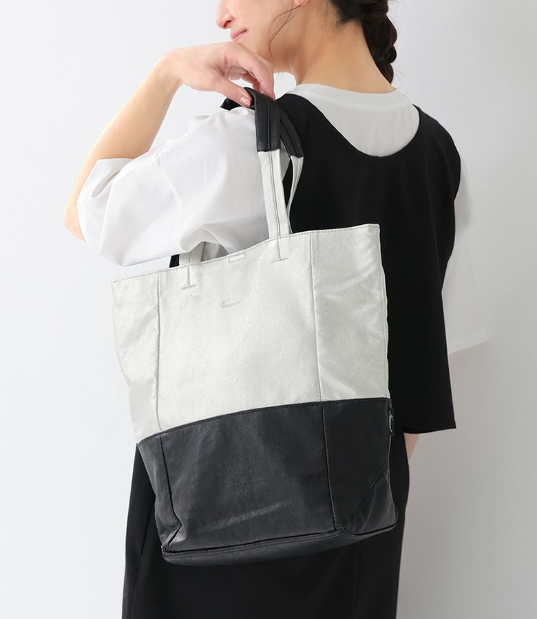 『30%OFFセール★OUKA SELECTバイカラーフェイクレザートート』