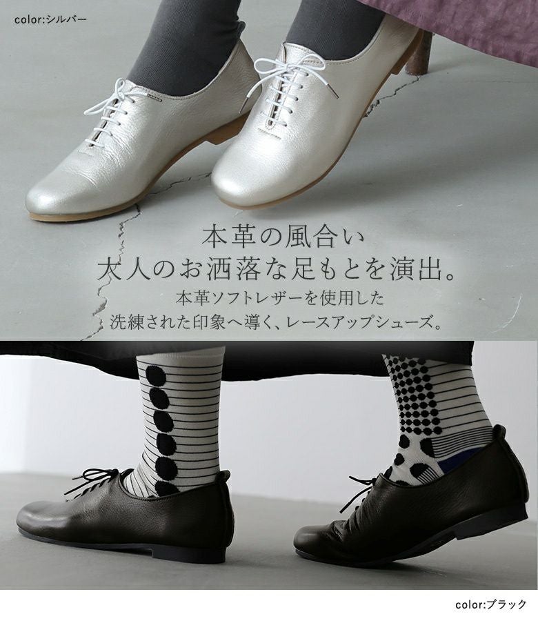 【23.0cm】◆ 薄手の靴下:ちょうど良い 足長に程良いゆとり、巾共はぴったりでした。レザーがとても柔らかい為、長時間履いても痛みを感じる事無く過ごせました。レースアップの紐がゴム仕様なので、紐を結んだ状態でも着脱が可能で、とても良かったです。
