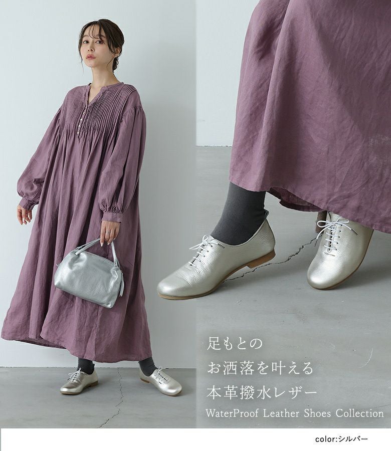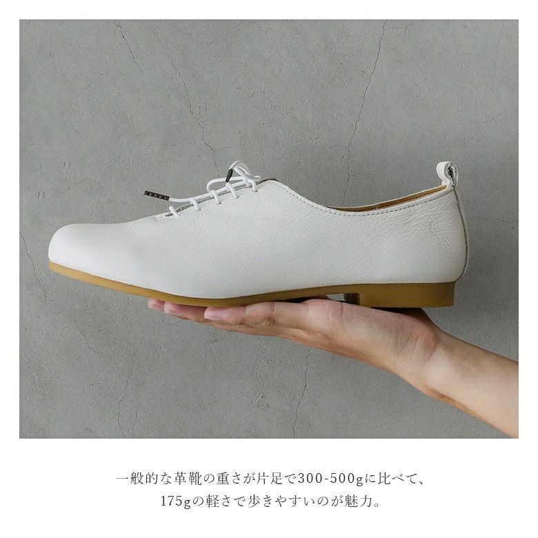 足長もワイズも程よいゆとりがあり、ちょうど良かったです。全体的に生地が柔らかいので、長時間履いても痛くなるところはなく、履きやすかったです。とても軽くて、疲れる事もなかったです。本革なのに撥水なのは、かなり魅力的です。