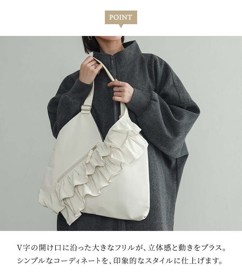 他の画像を見る 【4/29販売】大ぶりなフリルがコーデのアクセントになるフリルVカットトート。 【新色登場】『フリルVカットトート』【メール便不可】【20】 ¥ 4,070 税込 SOLD OUT 4.00 (2)