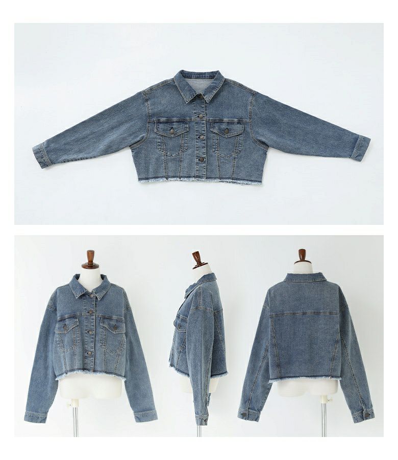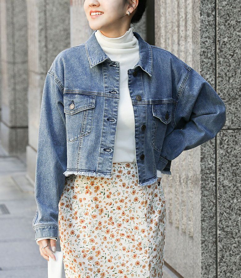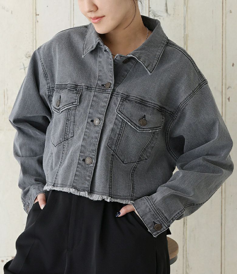 裾のカットオフデザインがポイントのショート丈デニムジャケット。