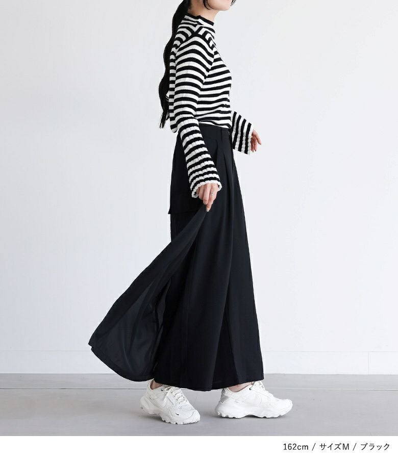 フロントスタイルはパンツ、バックスタイルはスカートに見える変形パンツ。