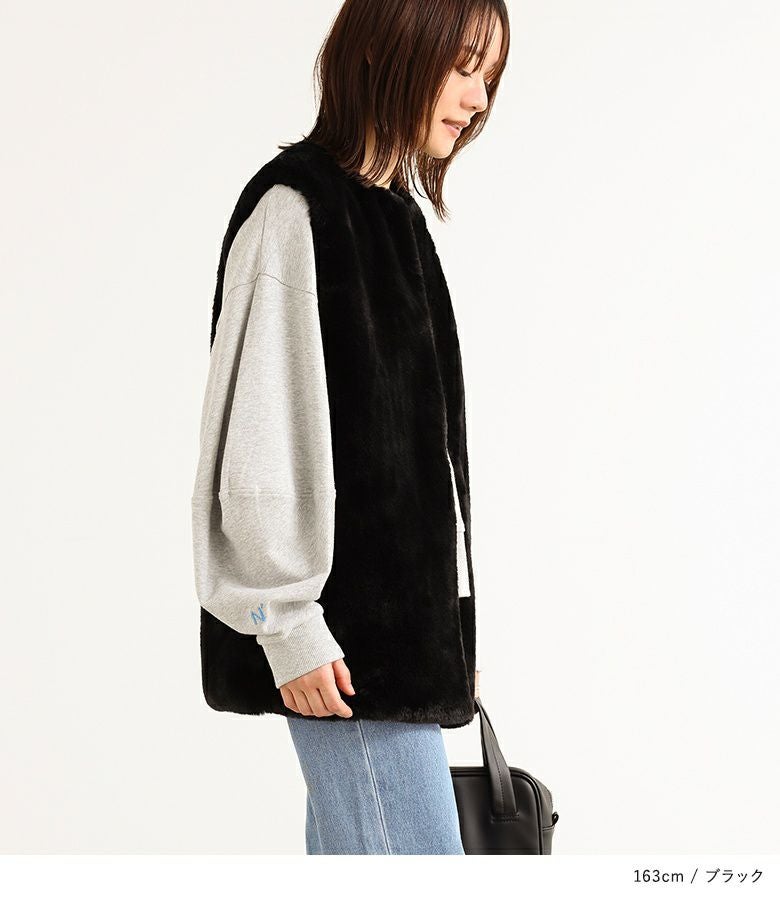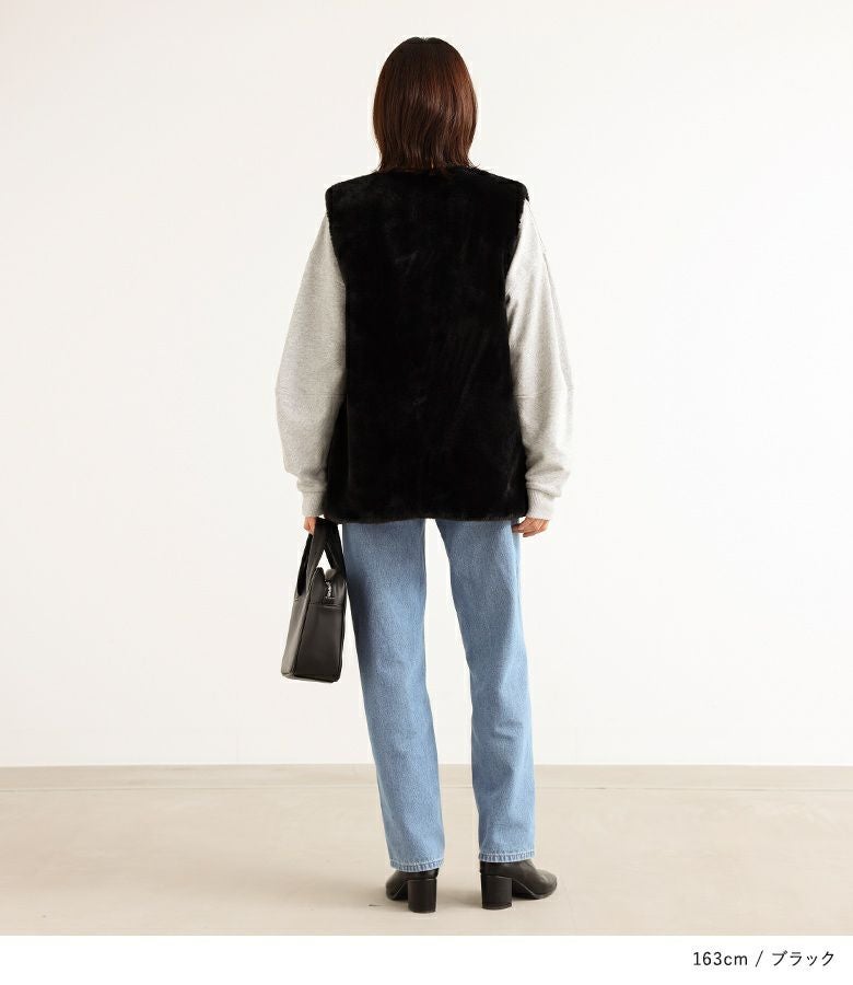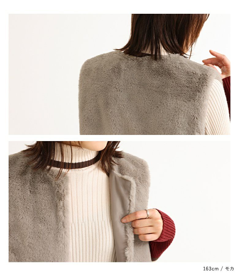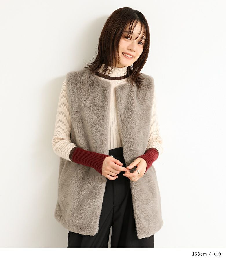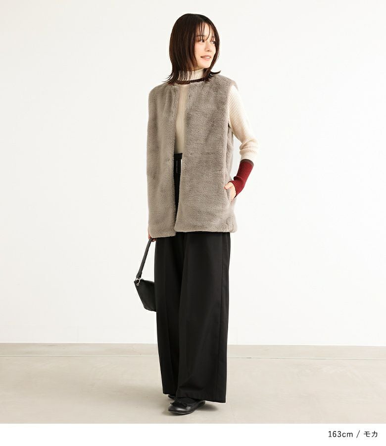 肌寒い時期のスタイリングに活躍するフェイクファージレ。